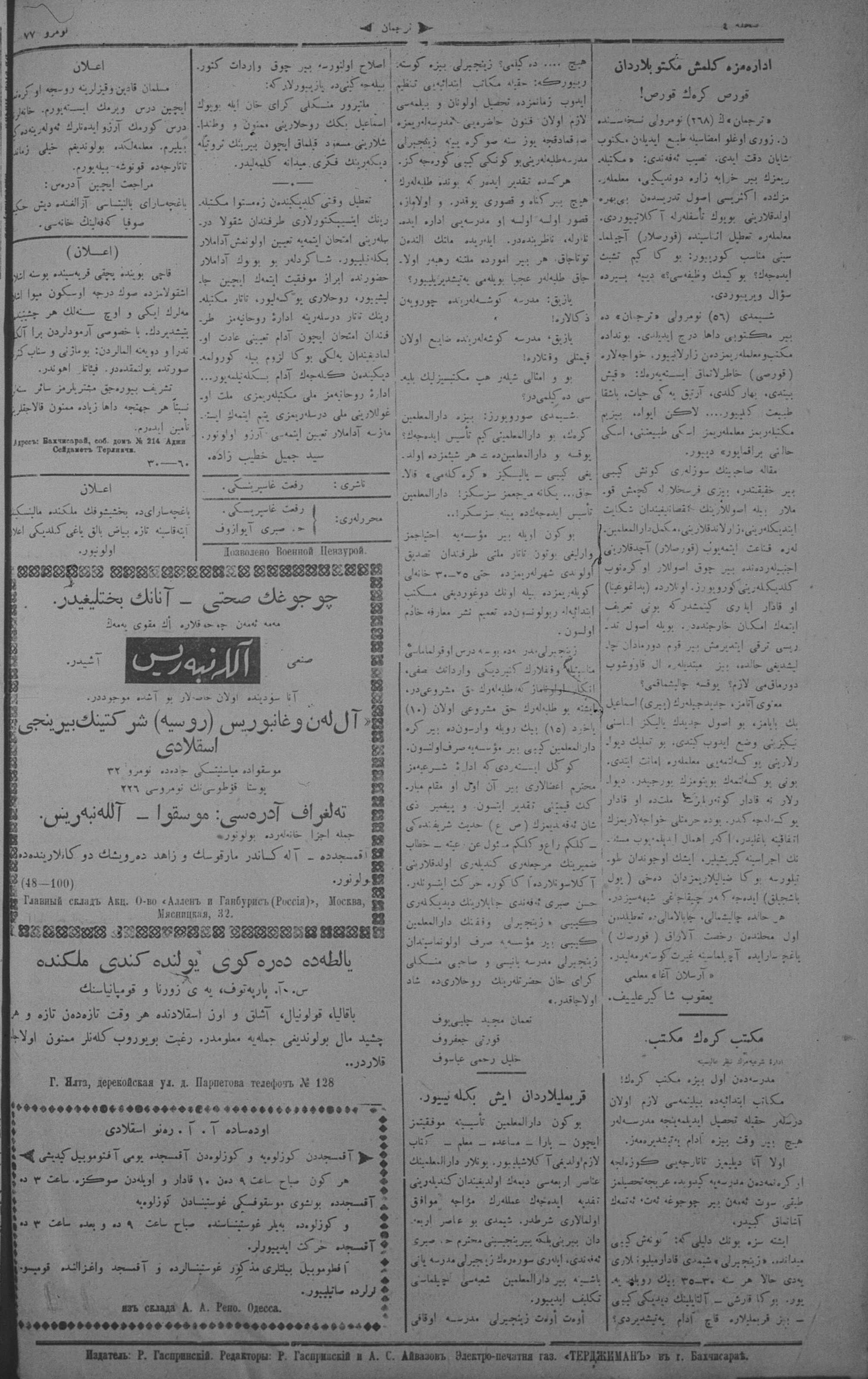Turkish-Russian newspaper published in Crimea by İsmail Gaspıralı.