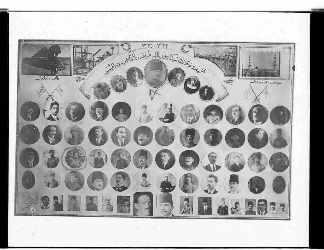 Middle: "1332-1335 Halife ve Hakanın Şebeke-i Resulullah etrafında dünkü bekçilerinden bir heyet"