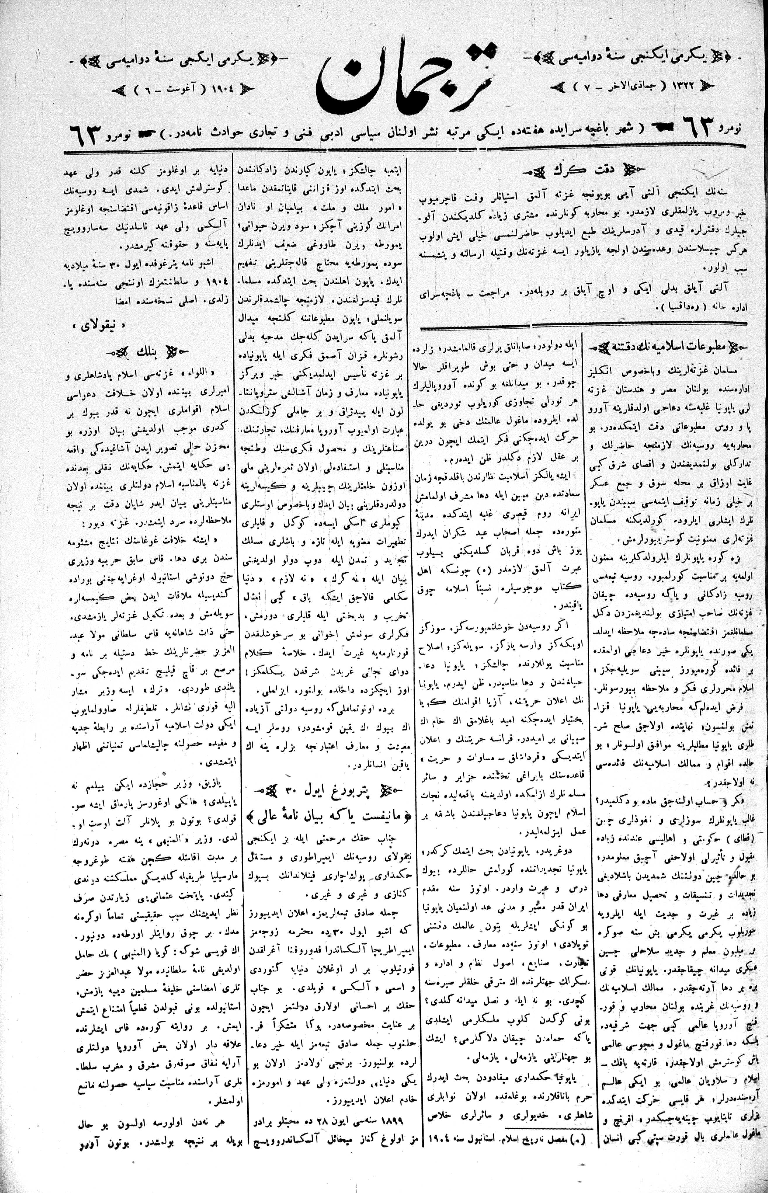 The name of the newspaper changed to Tercüman-ı Ahval-i Zaman in 1905. In 1909, it started to be published under its first name, Tercüman.