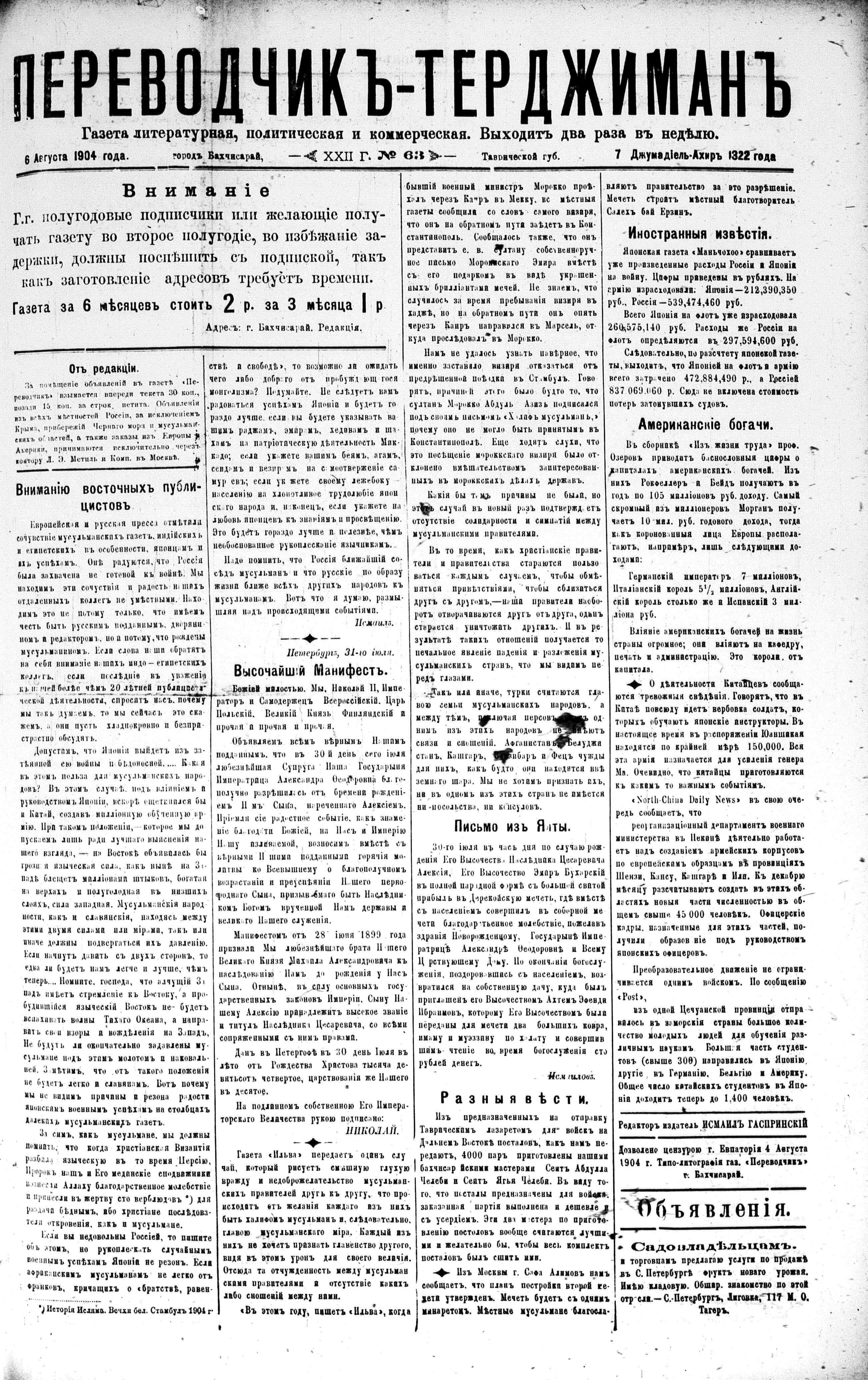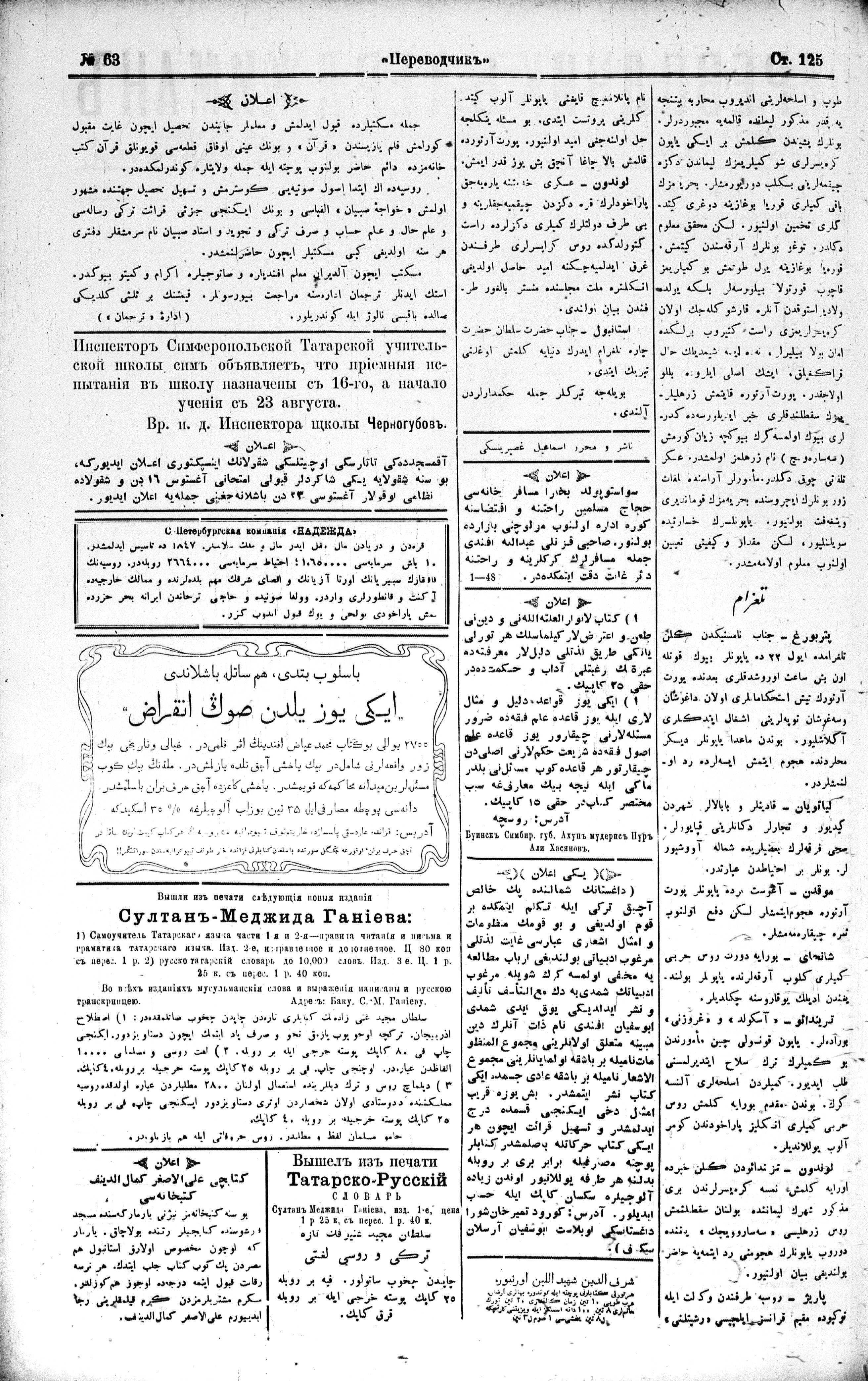 Turkish-Russian newspaper published in Crimea by İsmail Gaspıralı.
