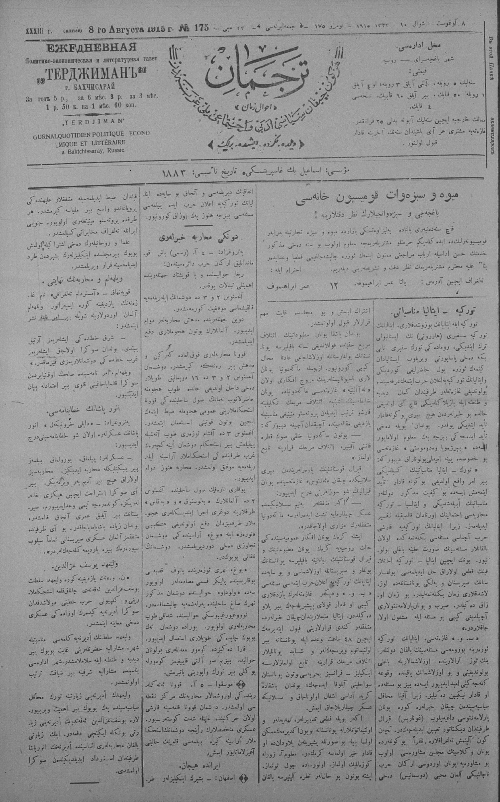 Turkish-Russian newspaper published in Crimea by İsmail Gaspıralı.