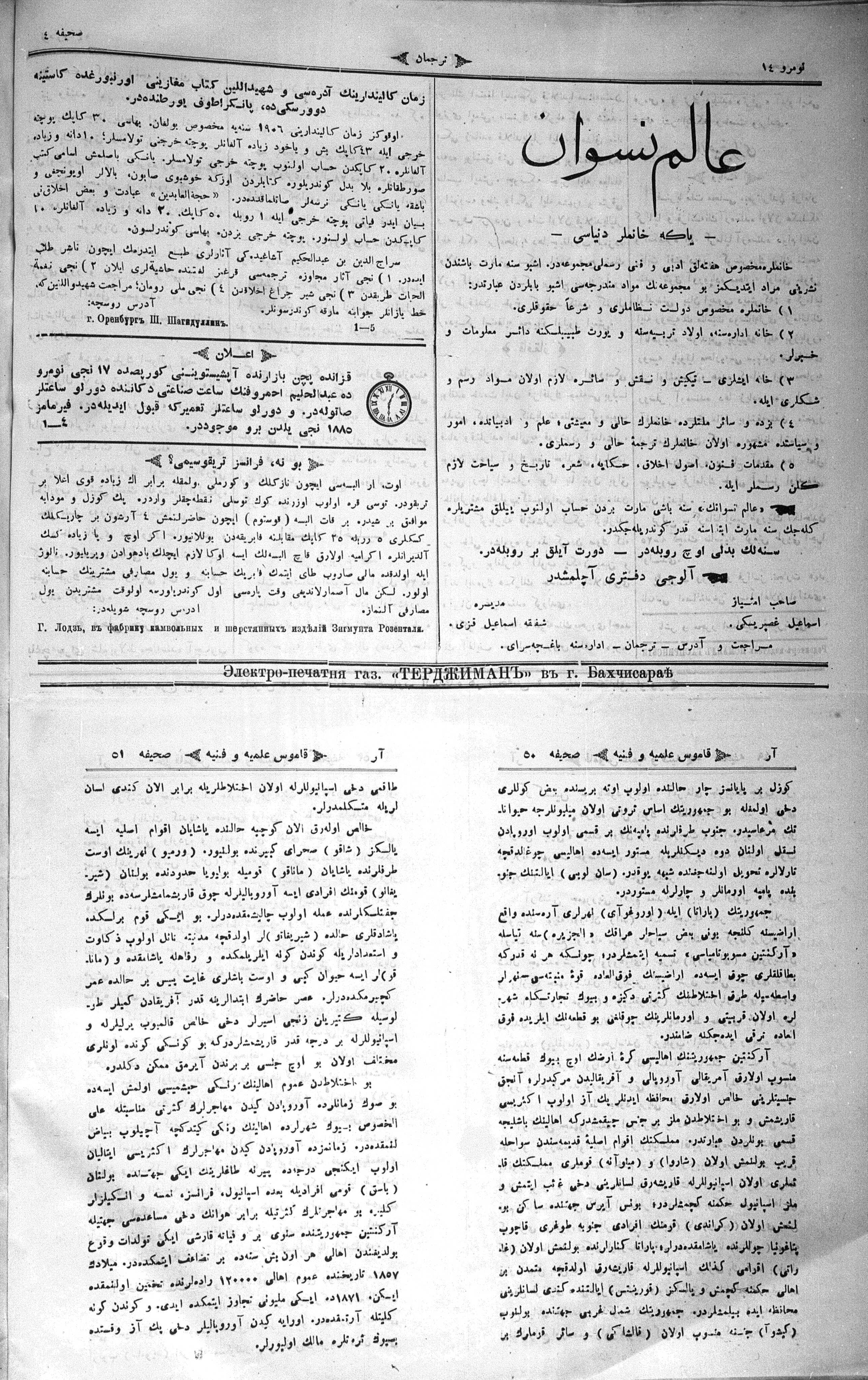 Turkish-Russian newspaper published in Crimea by İsmail Gaspıralı.