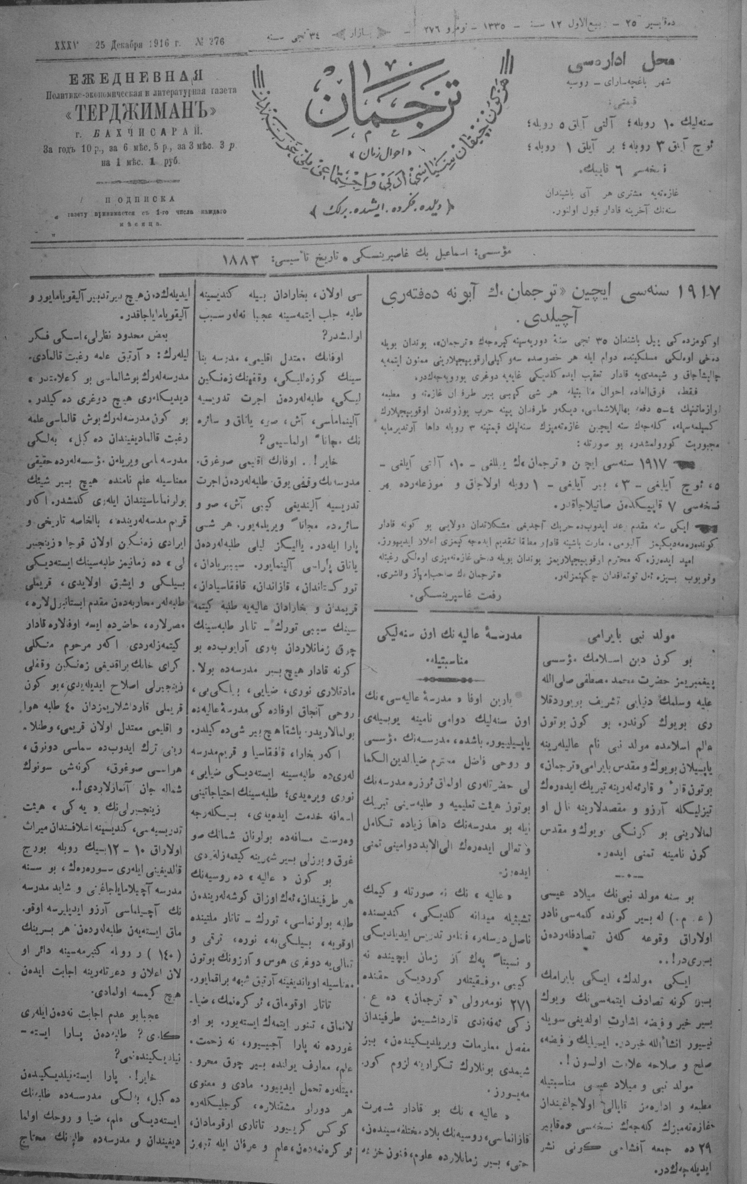 Turkish-Russian newspaper published in Crimea by İsmail Gaspıralı.