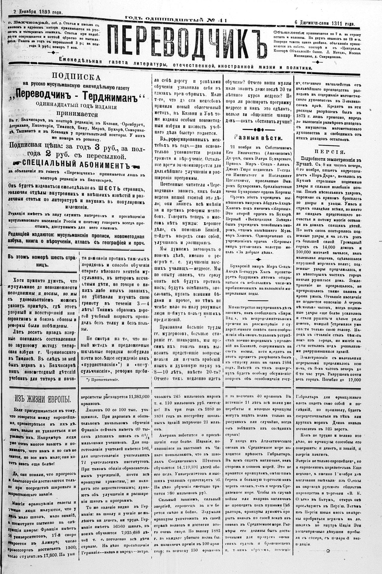 Tercüman, 02 December 1893 Year 11 No 41