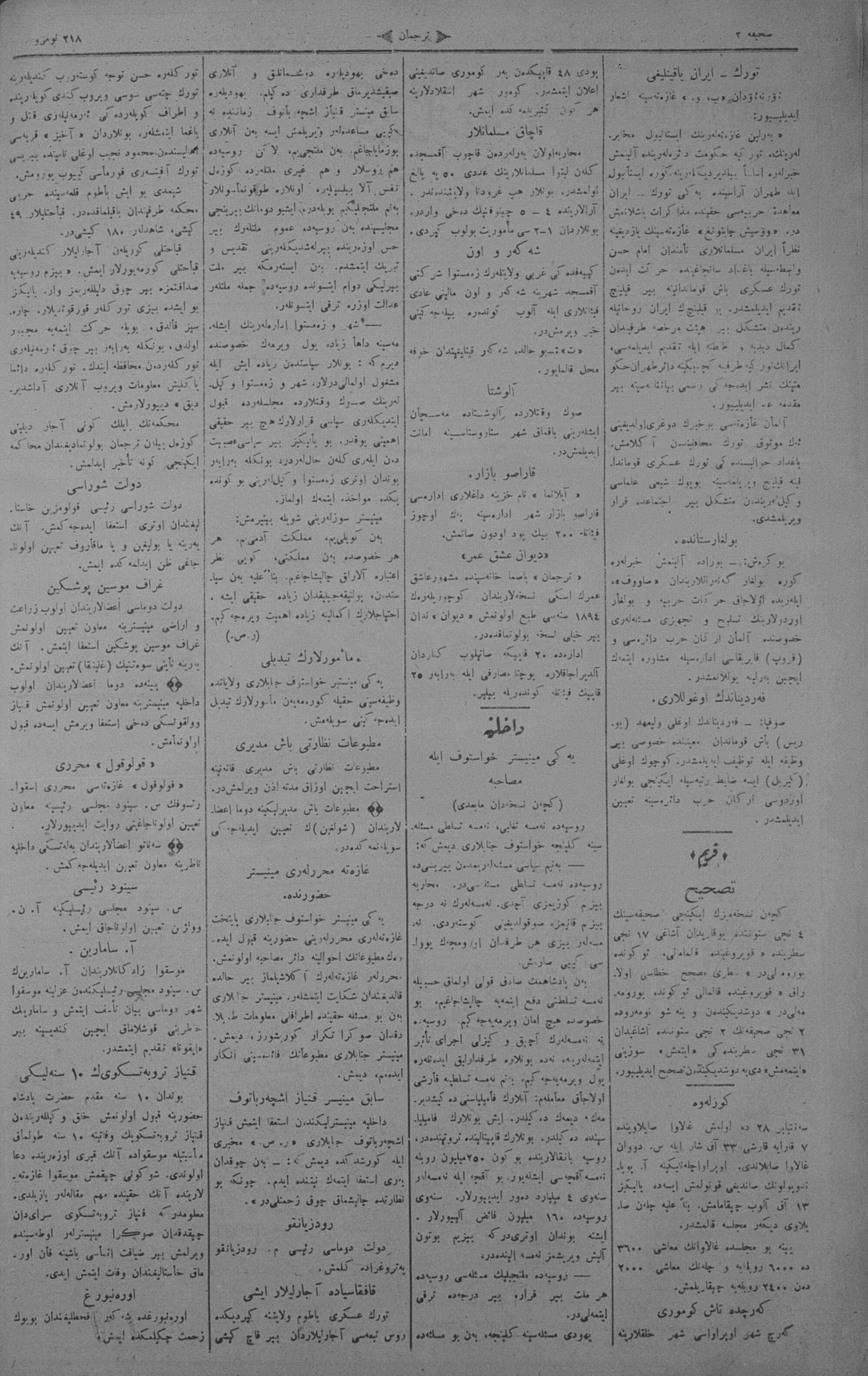 The name of the newspaper changed to Tercüman-ı Ahval-i Zaman in 1905. In 1909, it started to be published under its first name, Tercüman.