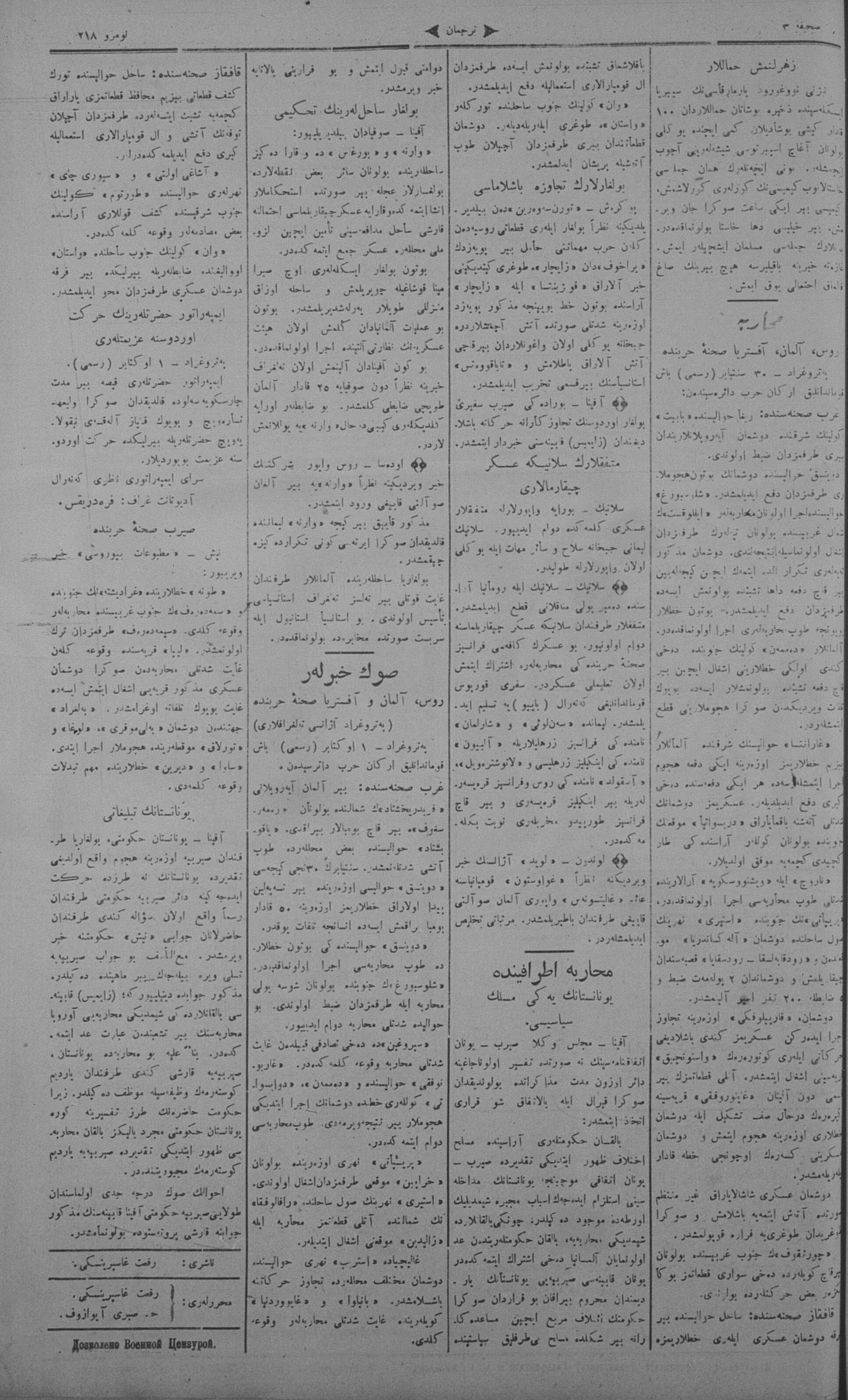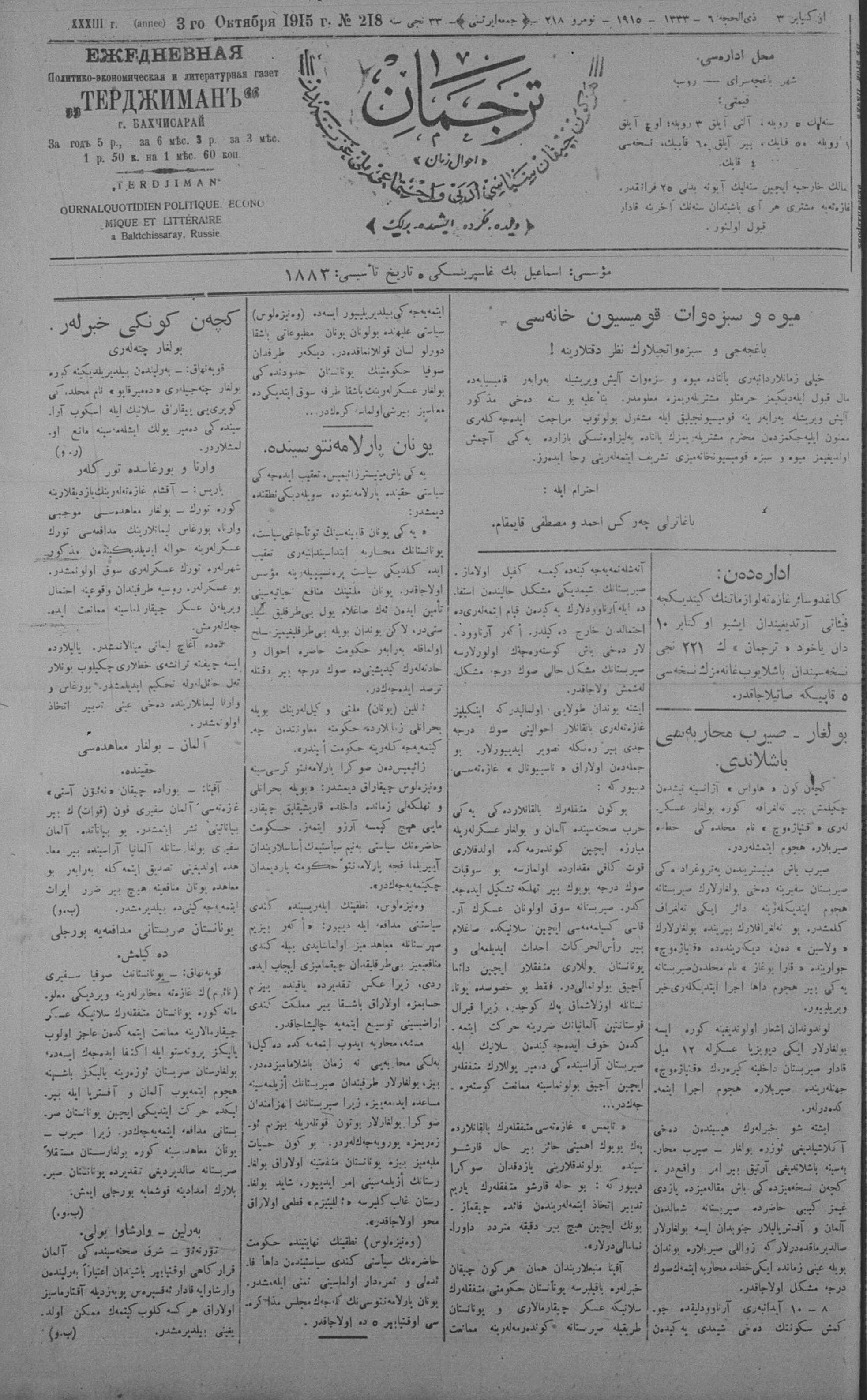 Tercüman, 03 October 1915 Year 33 No 218
