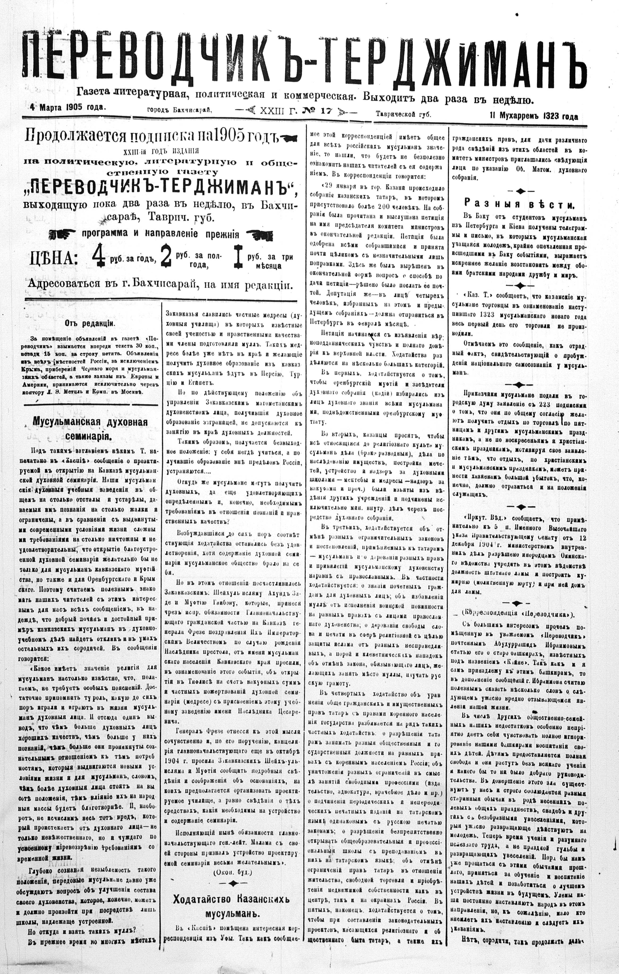Turkish-Russian newspaper published in Crimea by İsmail Gaspıralı.