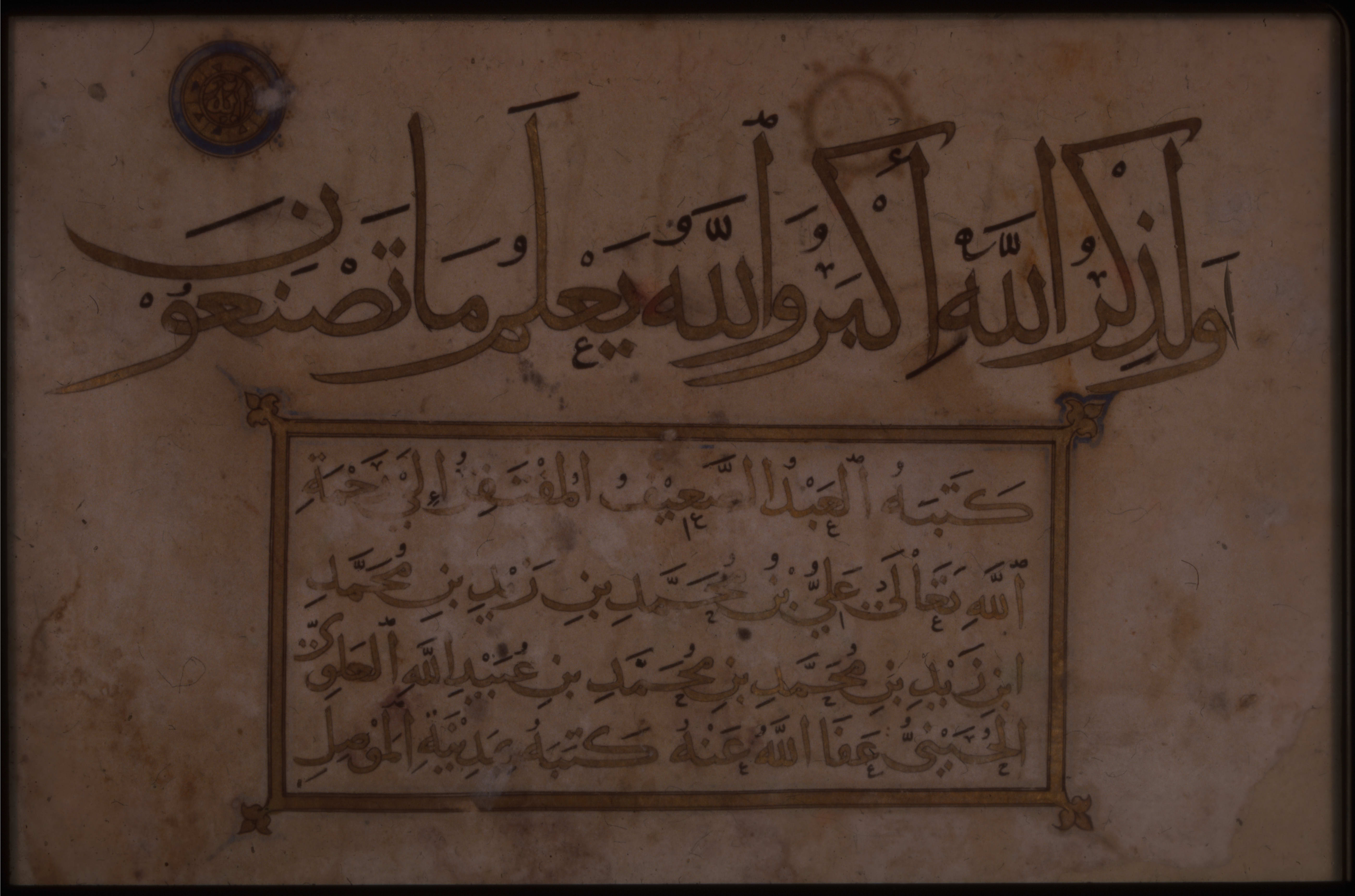 Ankebut Suresi 45. Ayet (Ali b. Muhammed b. Zeyd b. Muhammed İbn-i Zeyd b. Muhammed b. Muhammed b. Abdullah tarafından Musul'da yazılmıştır.)