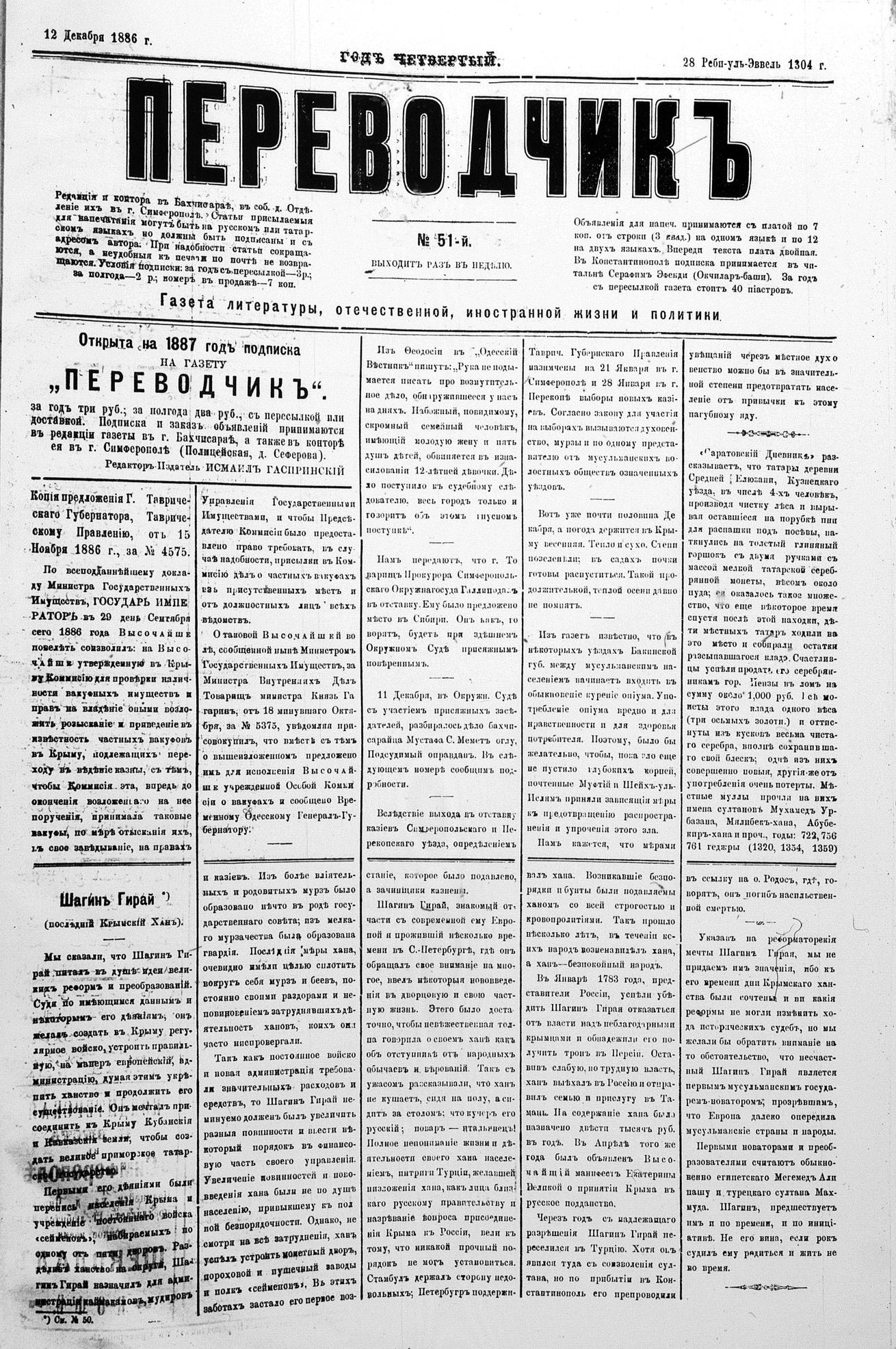 Tercüman, 12 December 1886 Year 4 No 51