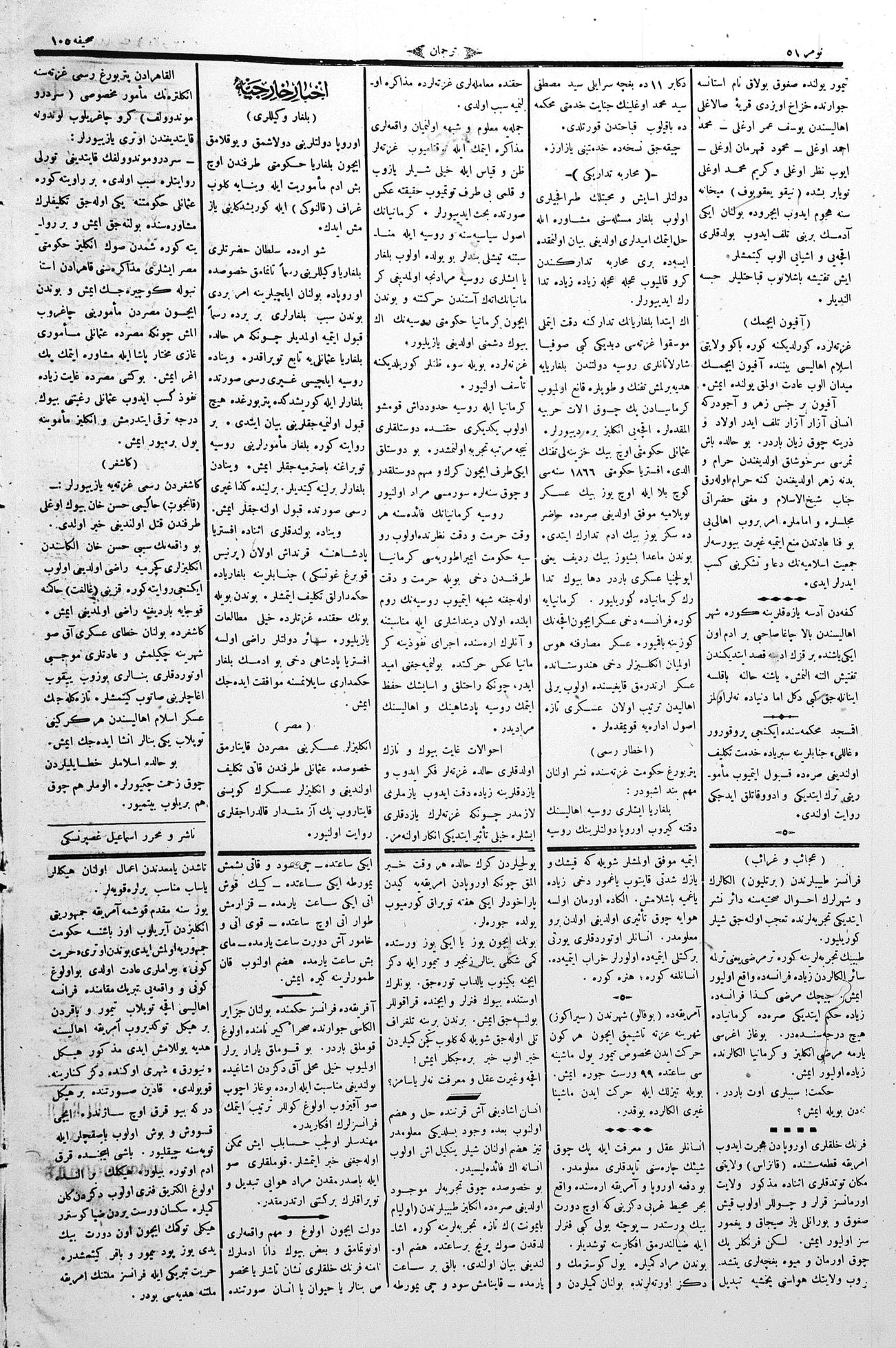 The name of the newspaper changed to Tercüman-ı Ahval-i Zaman in 1905. In 1909, it started to be published under its first name, Tercüman.