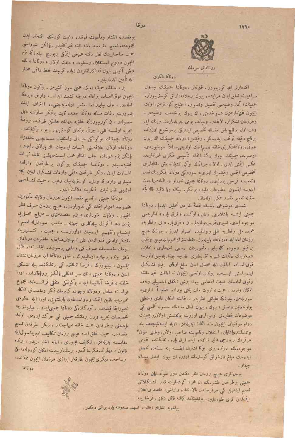 The name of the periodical was published under the following titles in different periods: Donanma: Donanma Cemiyetinin haftalık gazetesi; Donanma: istikbal denizlerdedir; Donanma: şimdilik ayda bir defa neşrolunur; Donanma: ayda bir defa neşr olunur, musavver, ahlaki, edebi, tarihi, fenni mecmuadır.