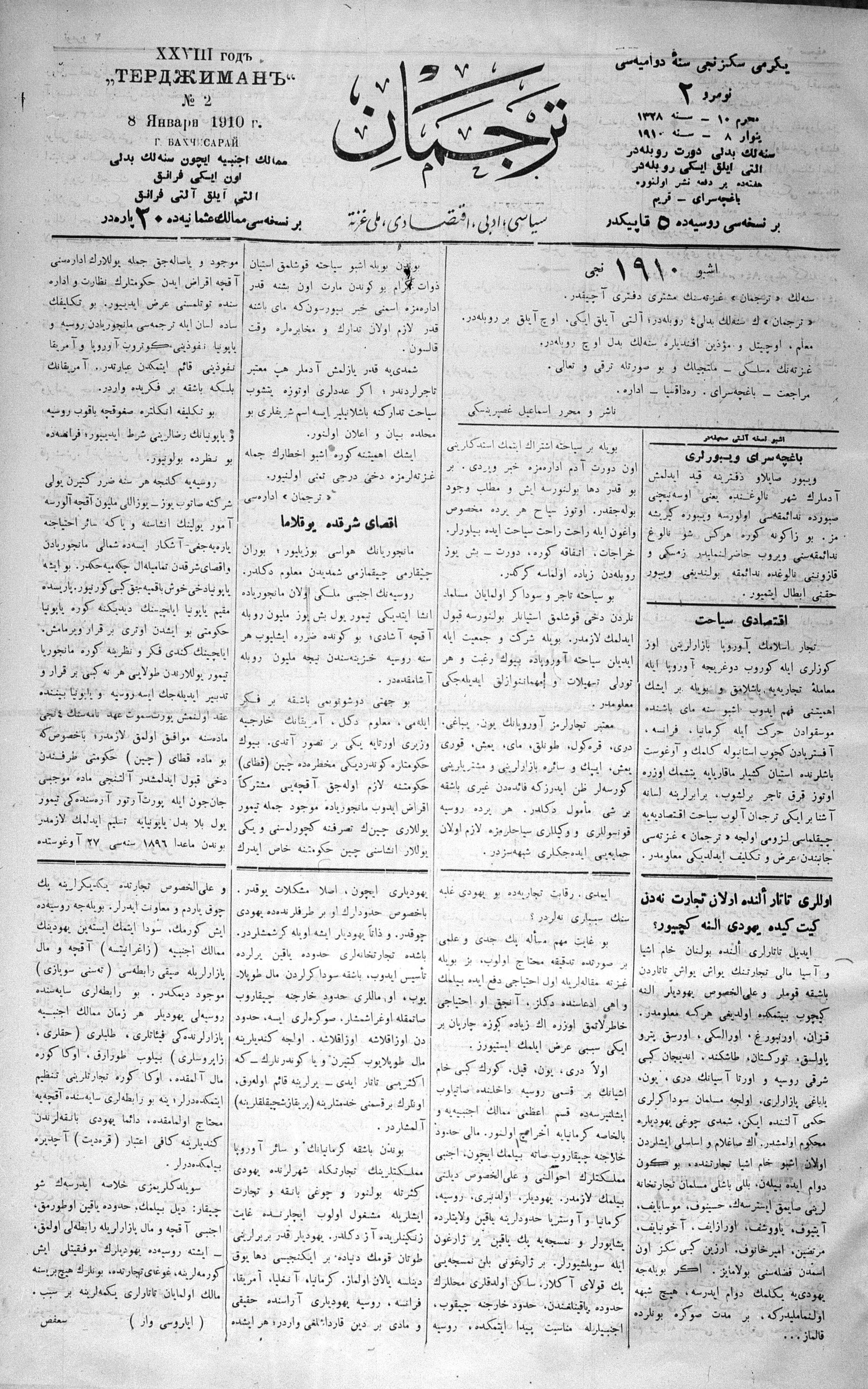 Tercüman, 08 January 1910 Year 28 No 2