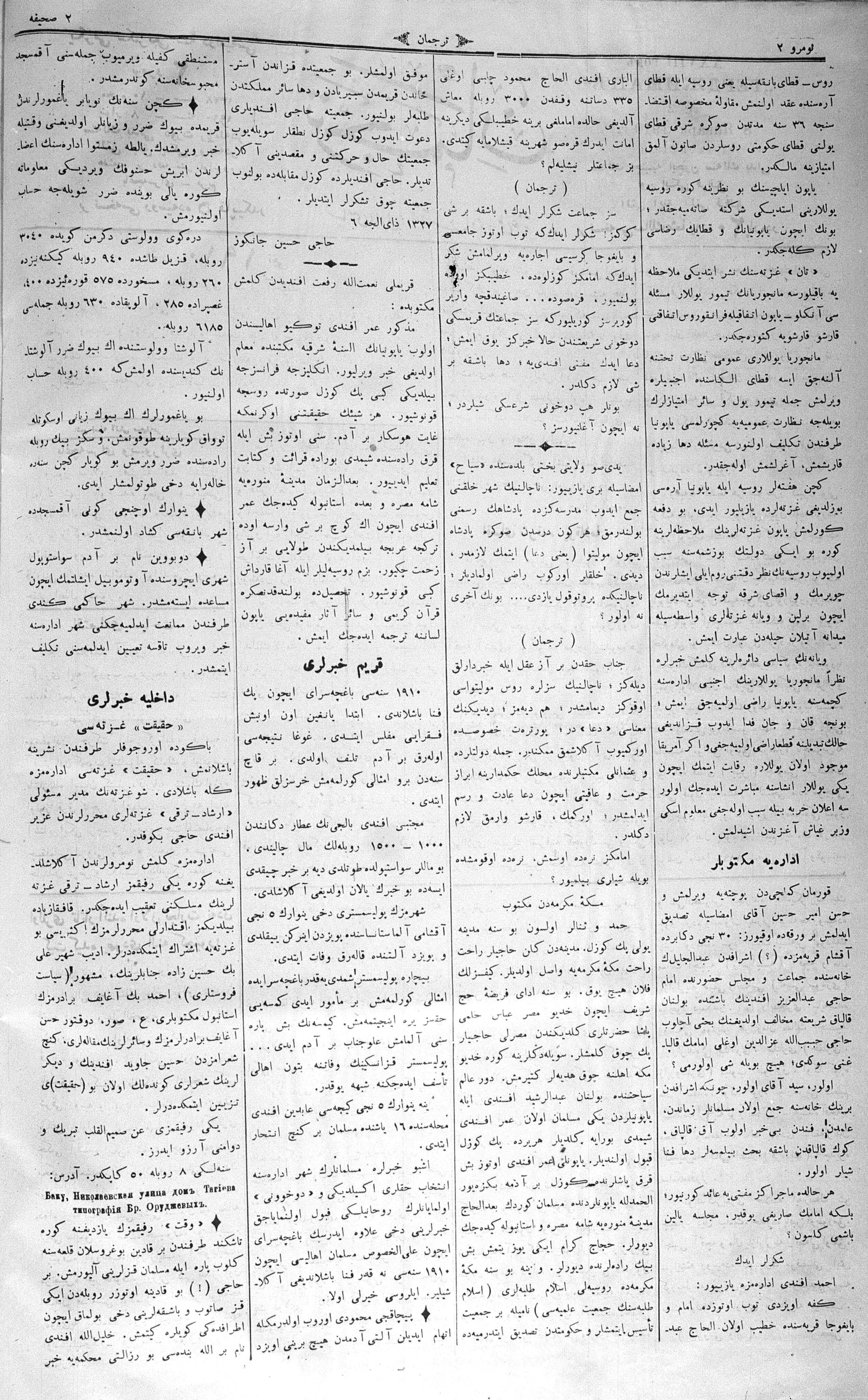 Turkish-Russian newspaper published in Crimea by İsmail Gaspıralı.