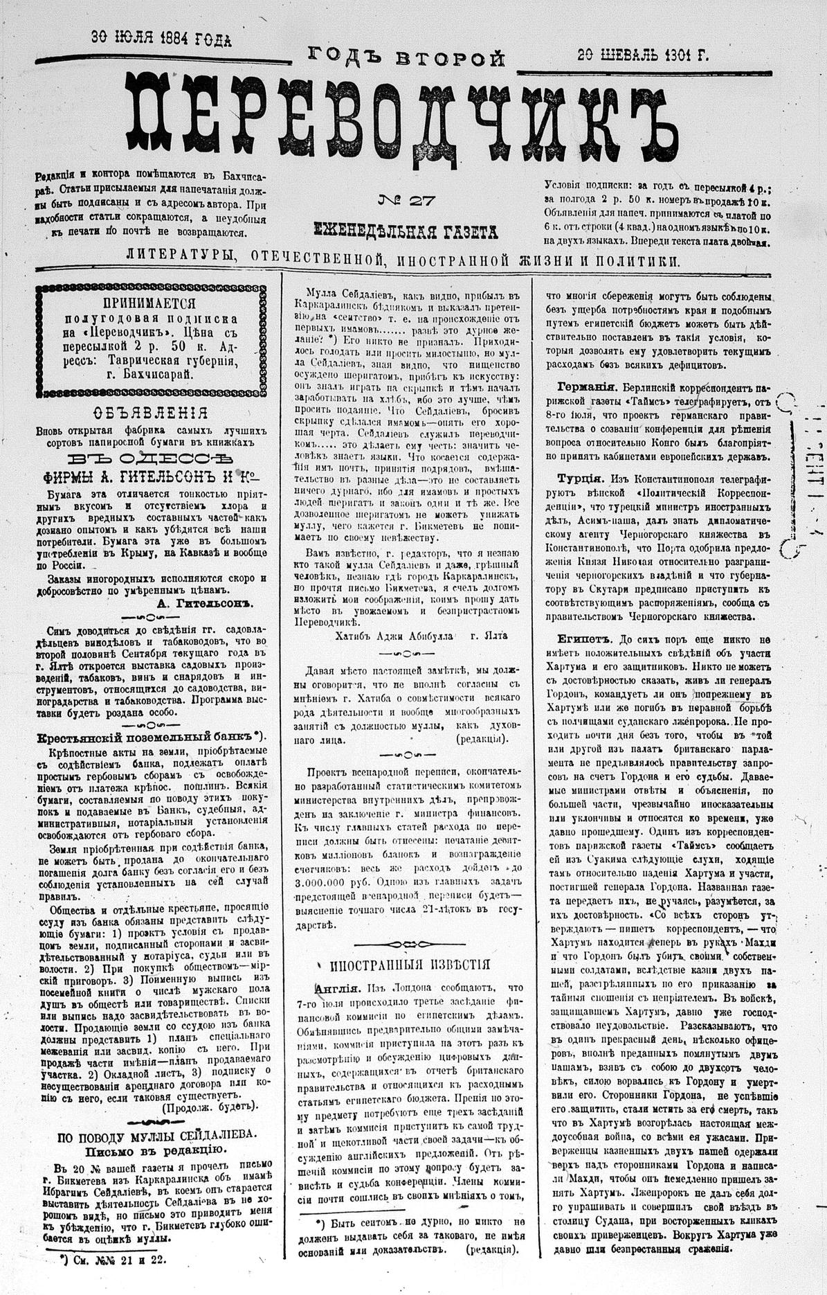Turkish-Russian newspaper published in Crimea by İsmail Gaspıralı.