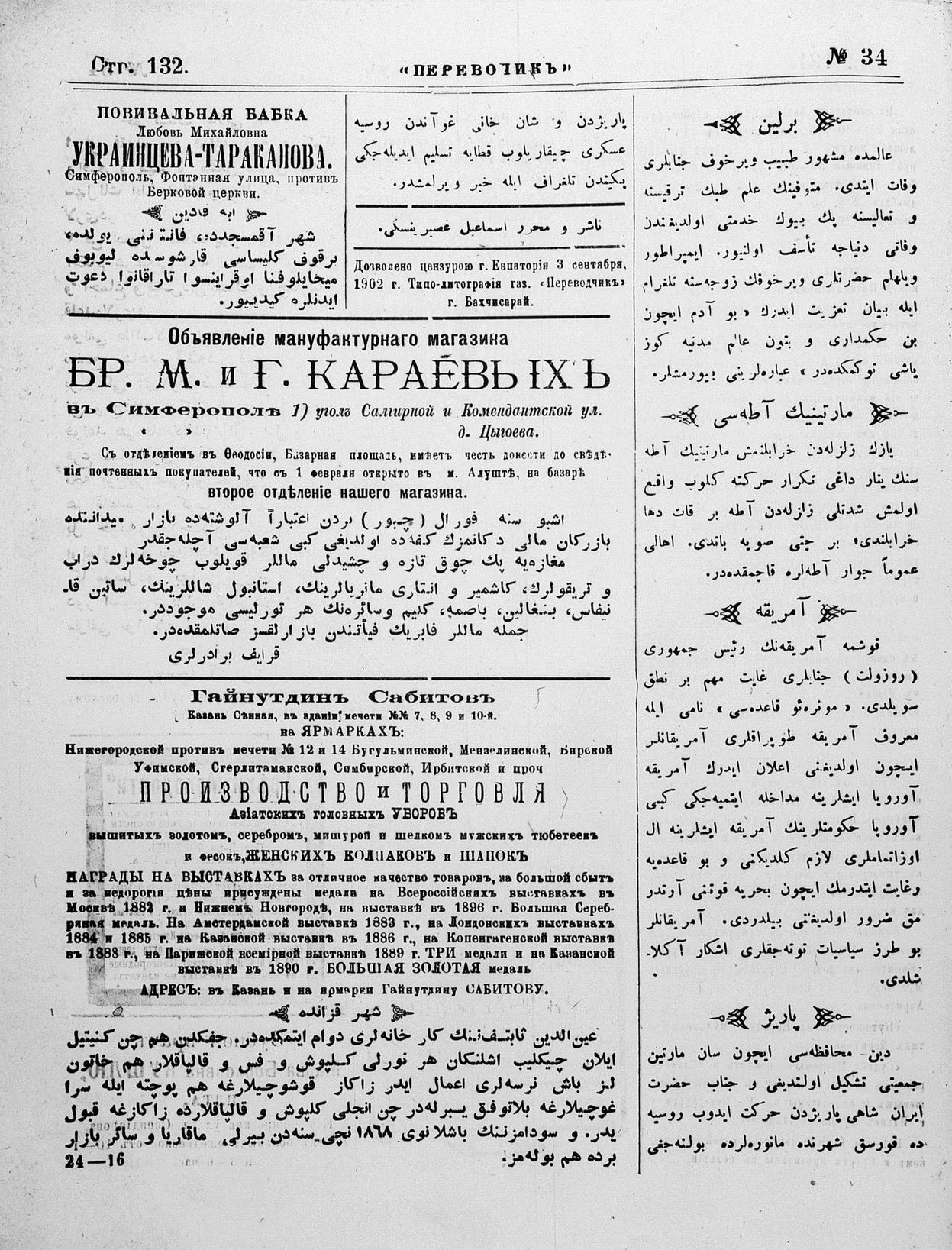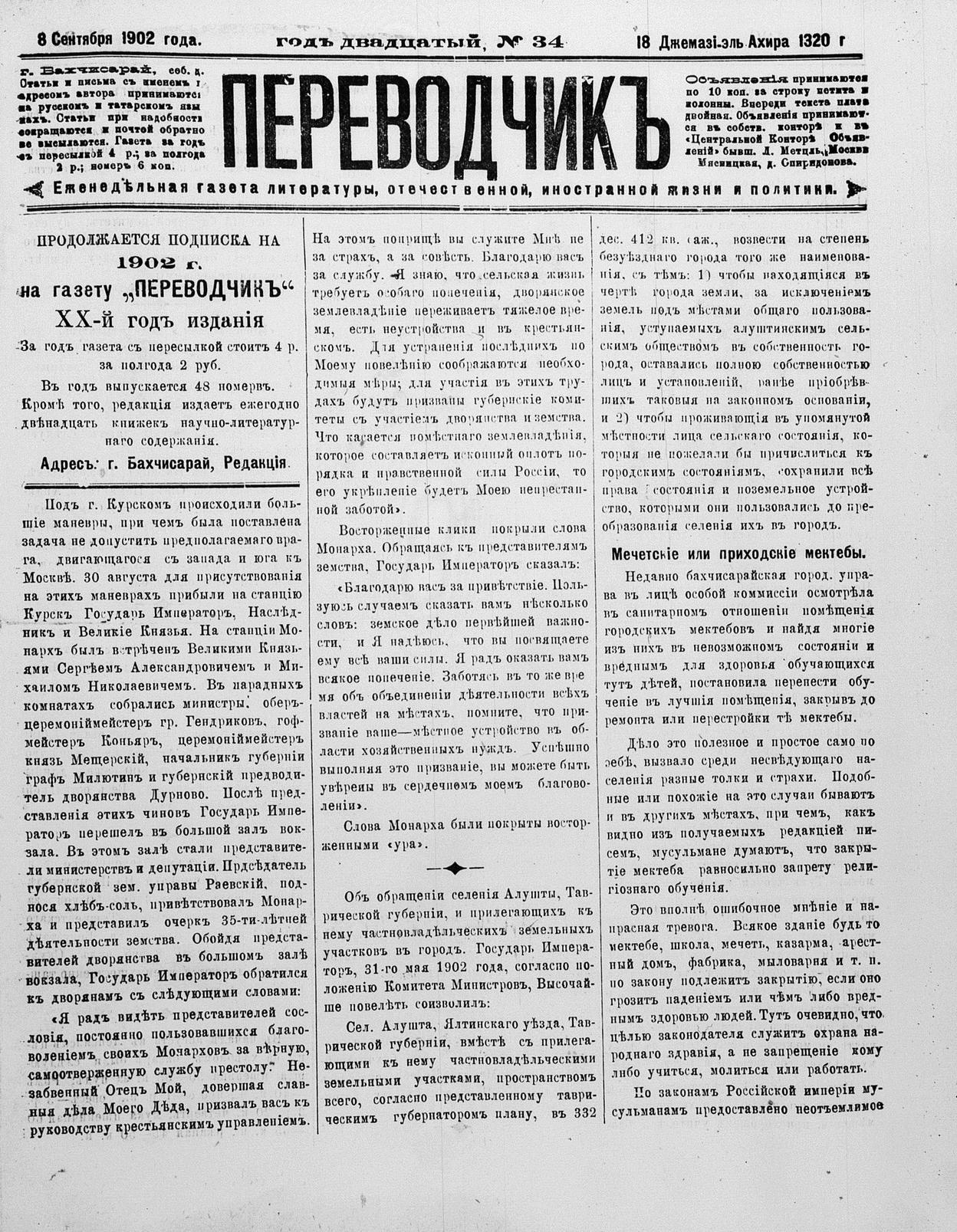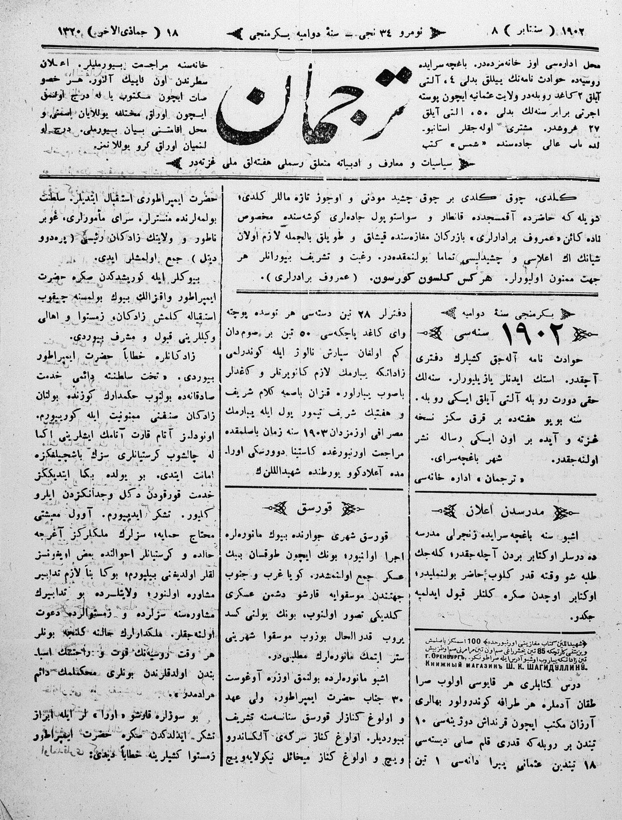 Tercüman, 08 September 1902 Year 20 No 34