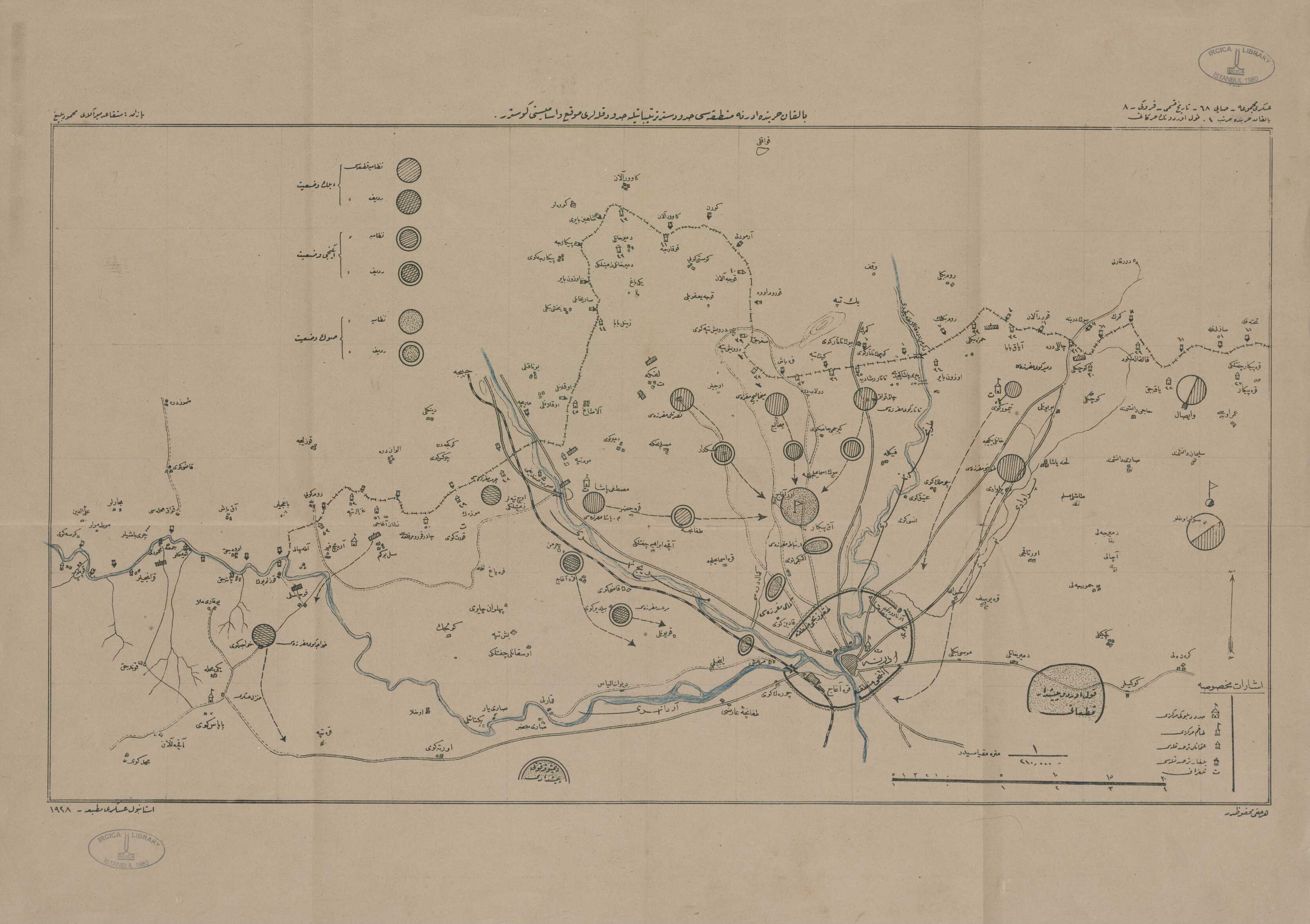 Balkan harbinde Edirne mıntıkası hudud-ı setr tertibatıyla hudud kuleleri mevki ve esamisini gösterir