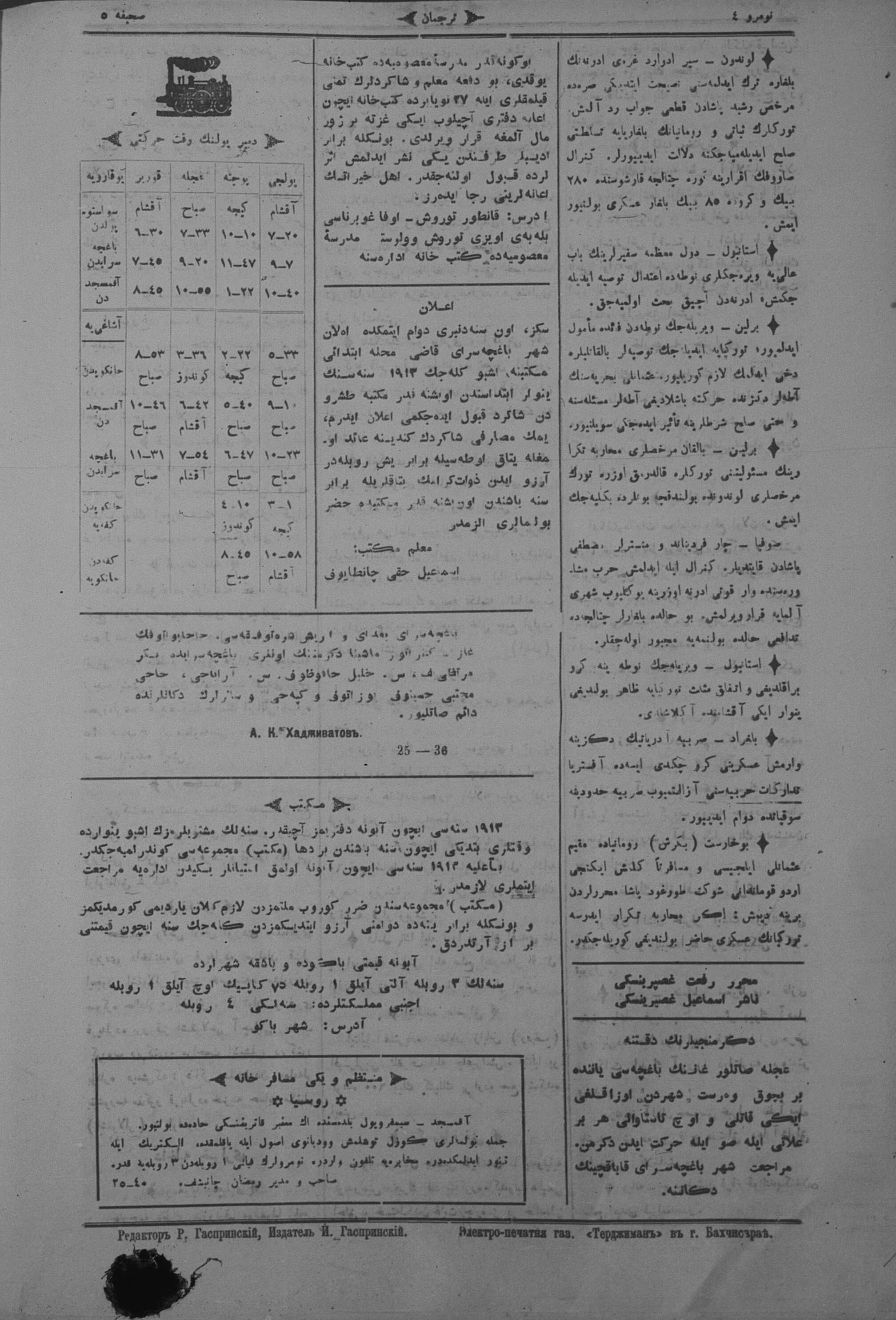 Turkish-Russian newspaper published in Crimea by İsmail Gaspıralı.
