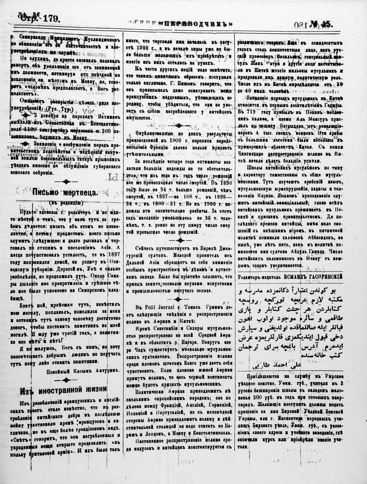 Different spellings of Tercüman: Terdzhiman, Terjuman, Perevodçik and Terjiman.