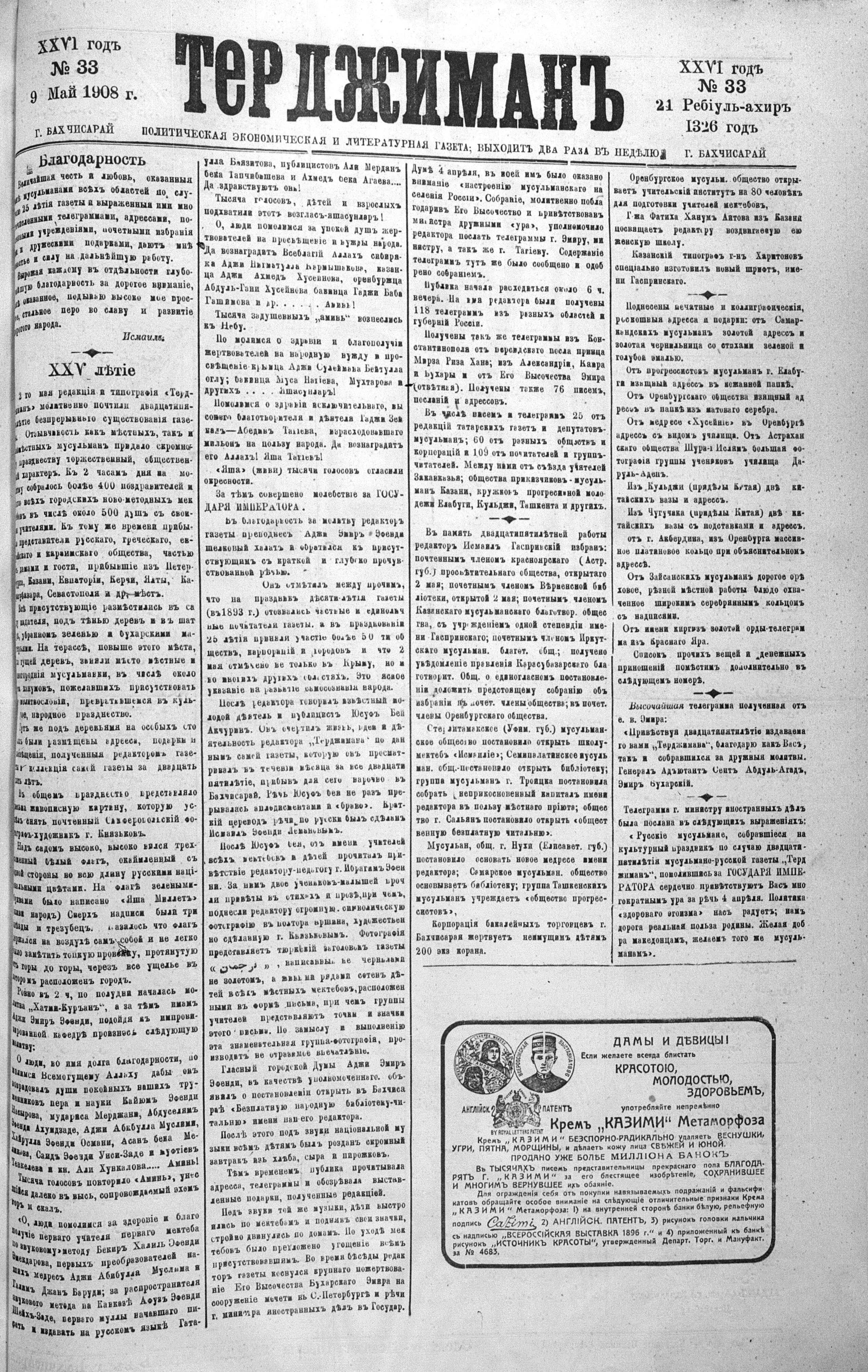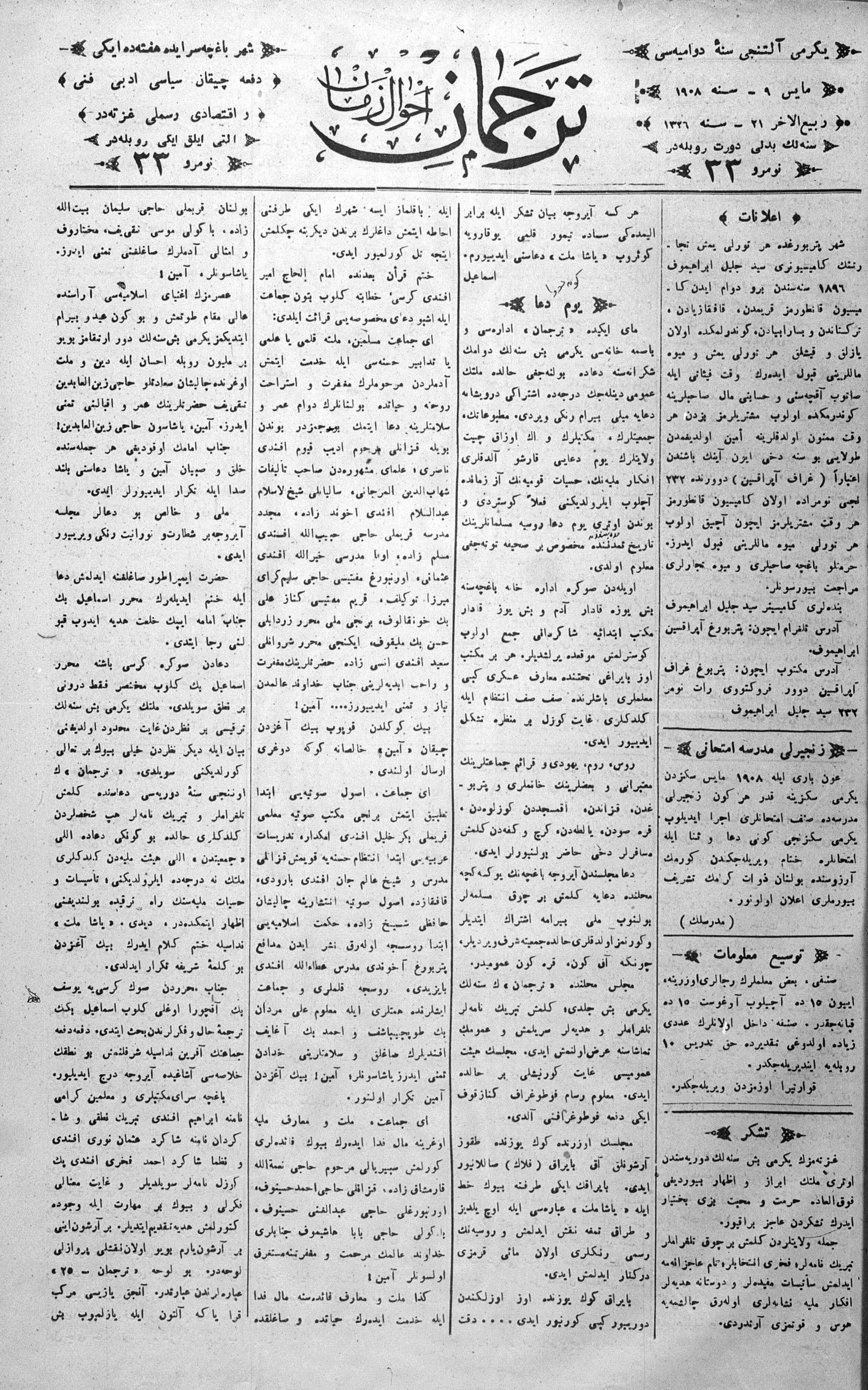 Tercüman, 09 May 1908 Year 26 No 33