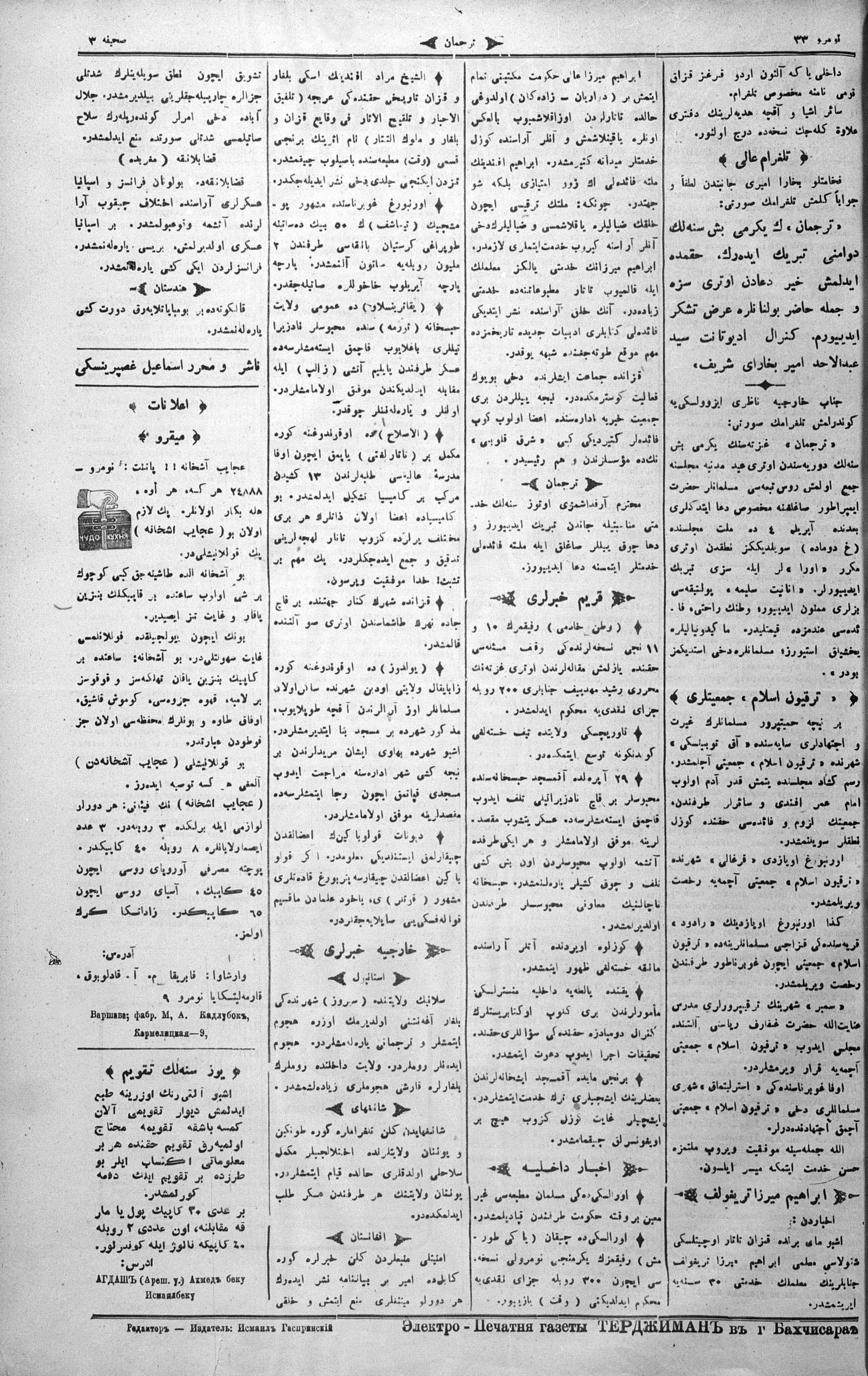 Turkish-Russian newspaper published in Crimea by İsmail Gaspıralı.