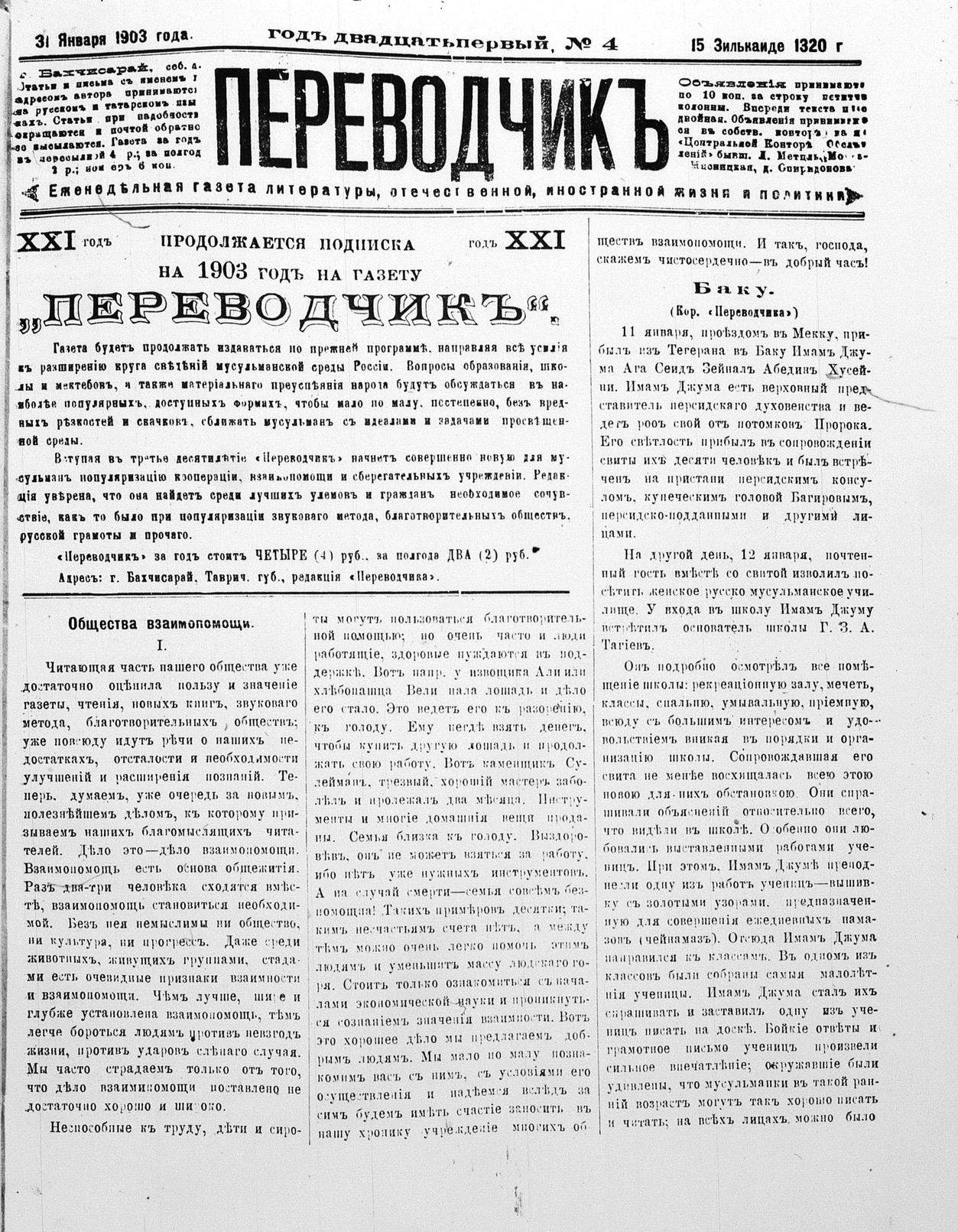 Turkish-Russian newspaper published in Crimea by İsmail Gaspıralı.