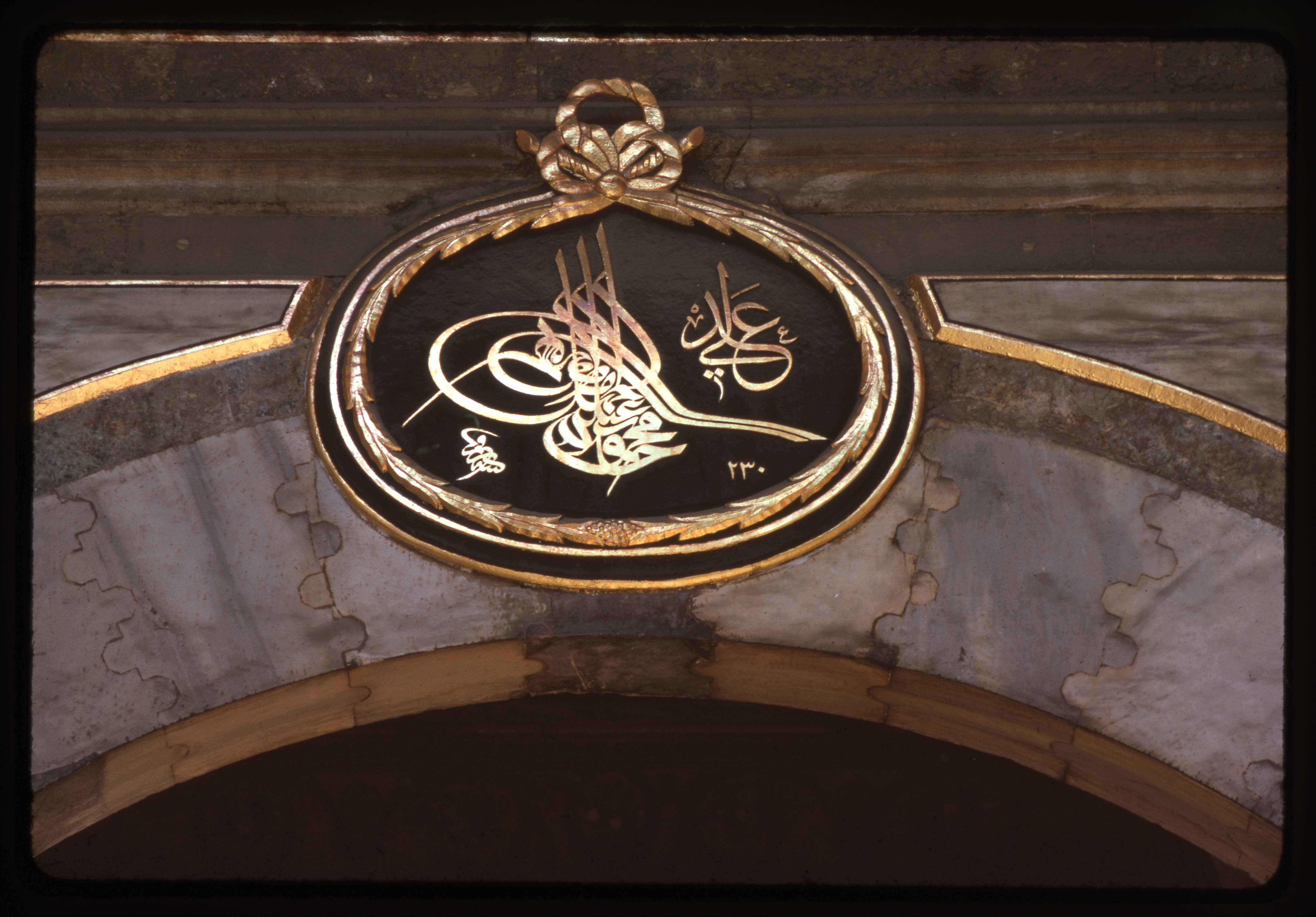 İstanbul-Topkapı Sarayı'nın giriş kapısında bulunan Rakım Efendi'nin II.Mahmud'a ait tuğrası