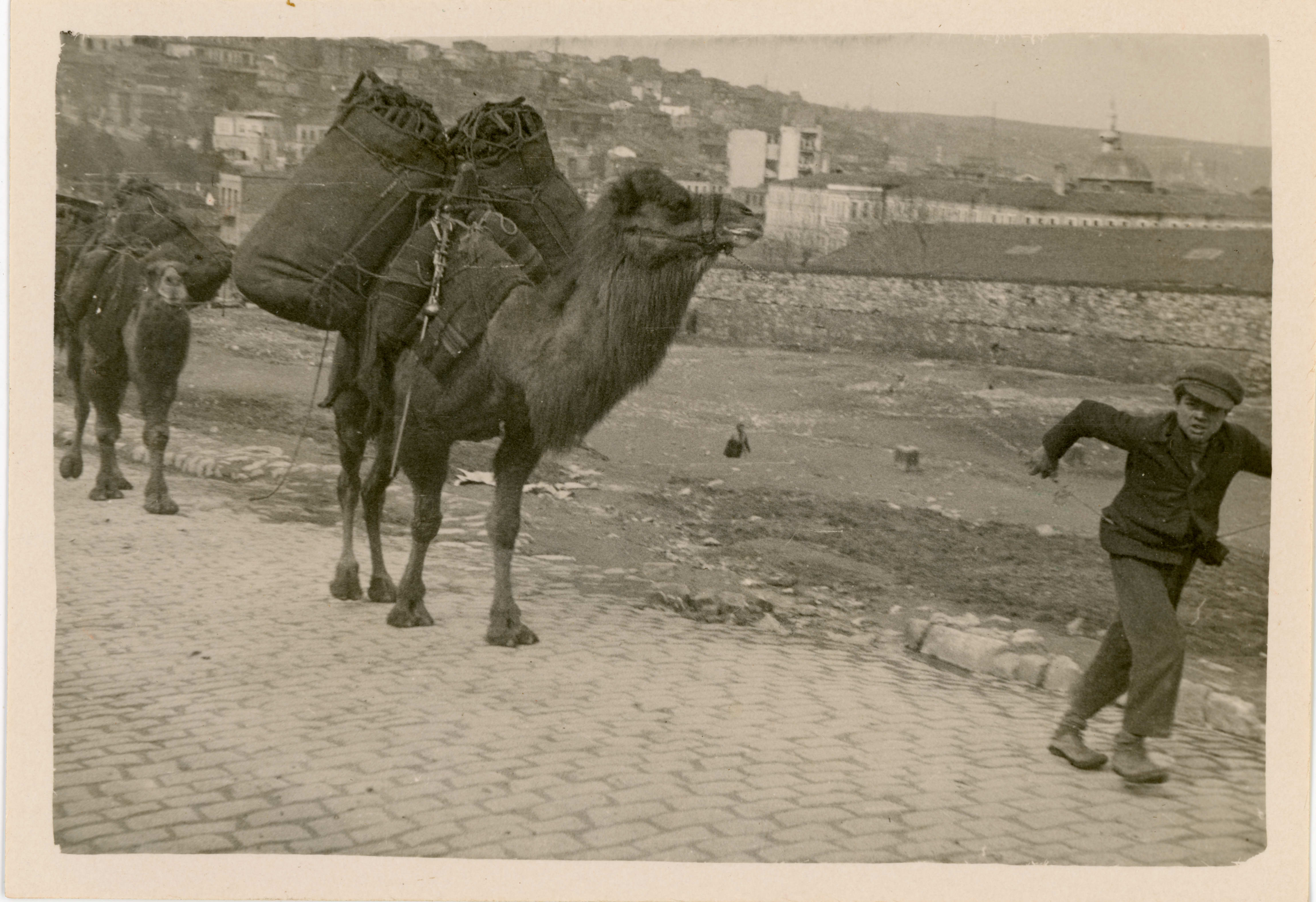 Kasımpaşa sırtlarında develer ile yük taşıyan çocuk