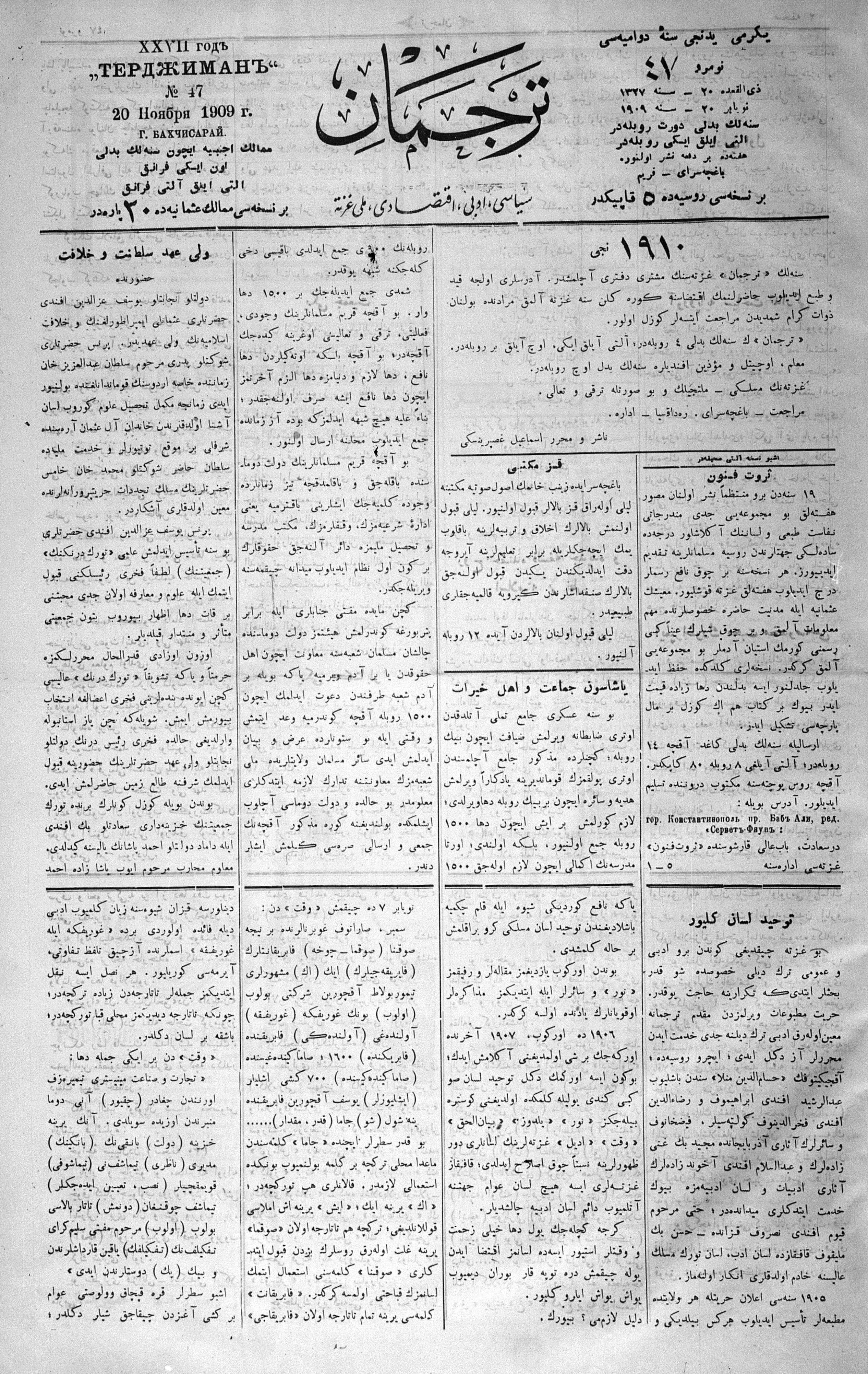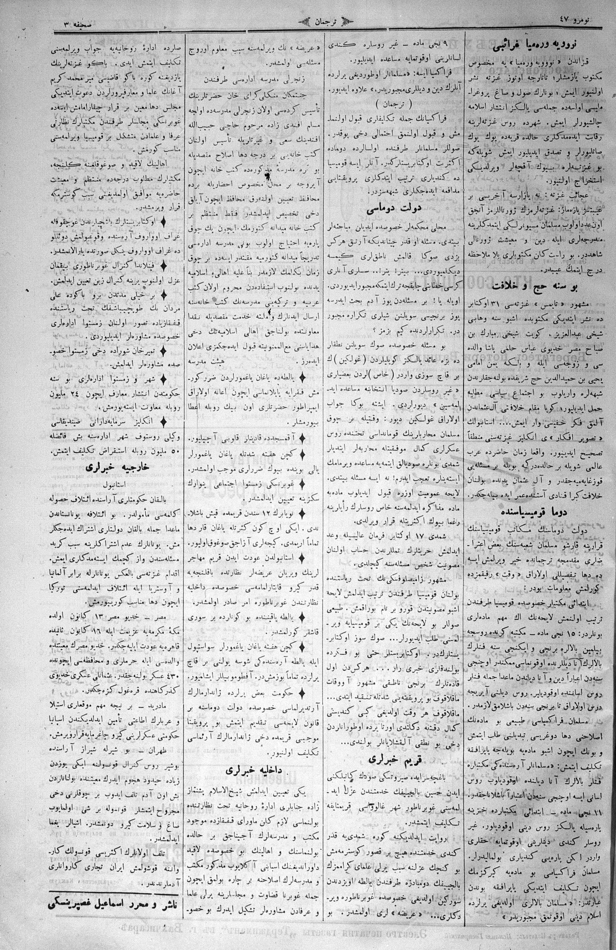 The name of the newspaper changed to Tercüman-ı Ahval-i Zaman in 1905. In 1909, it started to be published under its first name, Tercüman.