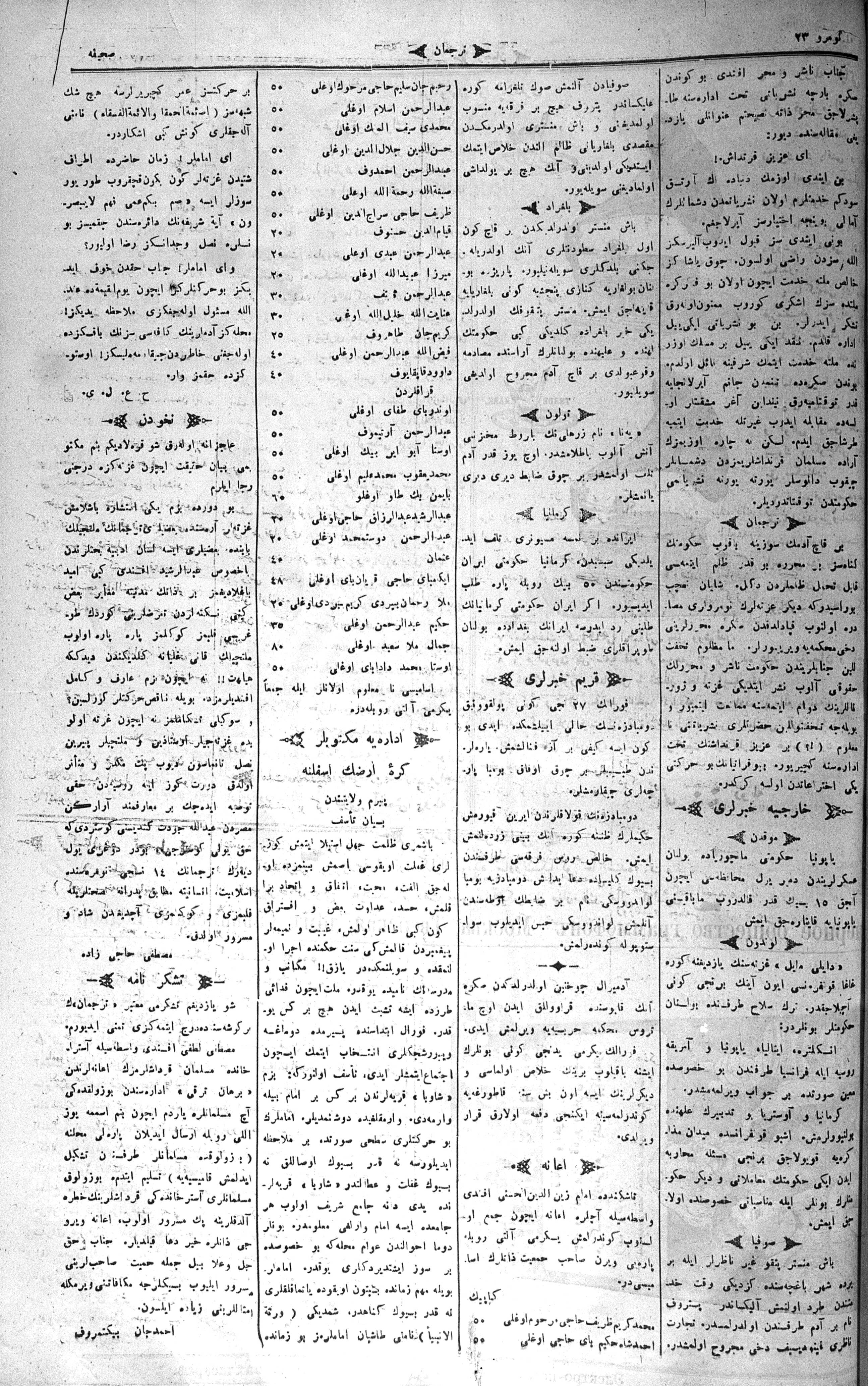Different spellings of Tercüman: Terdzhiman, Terjuman, Perevodçik and Terjiman.