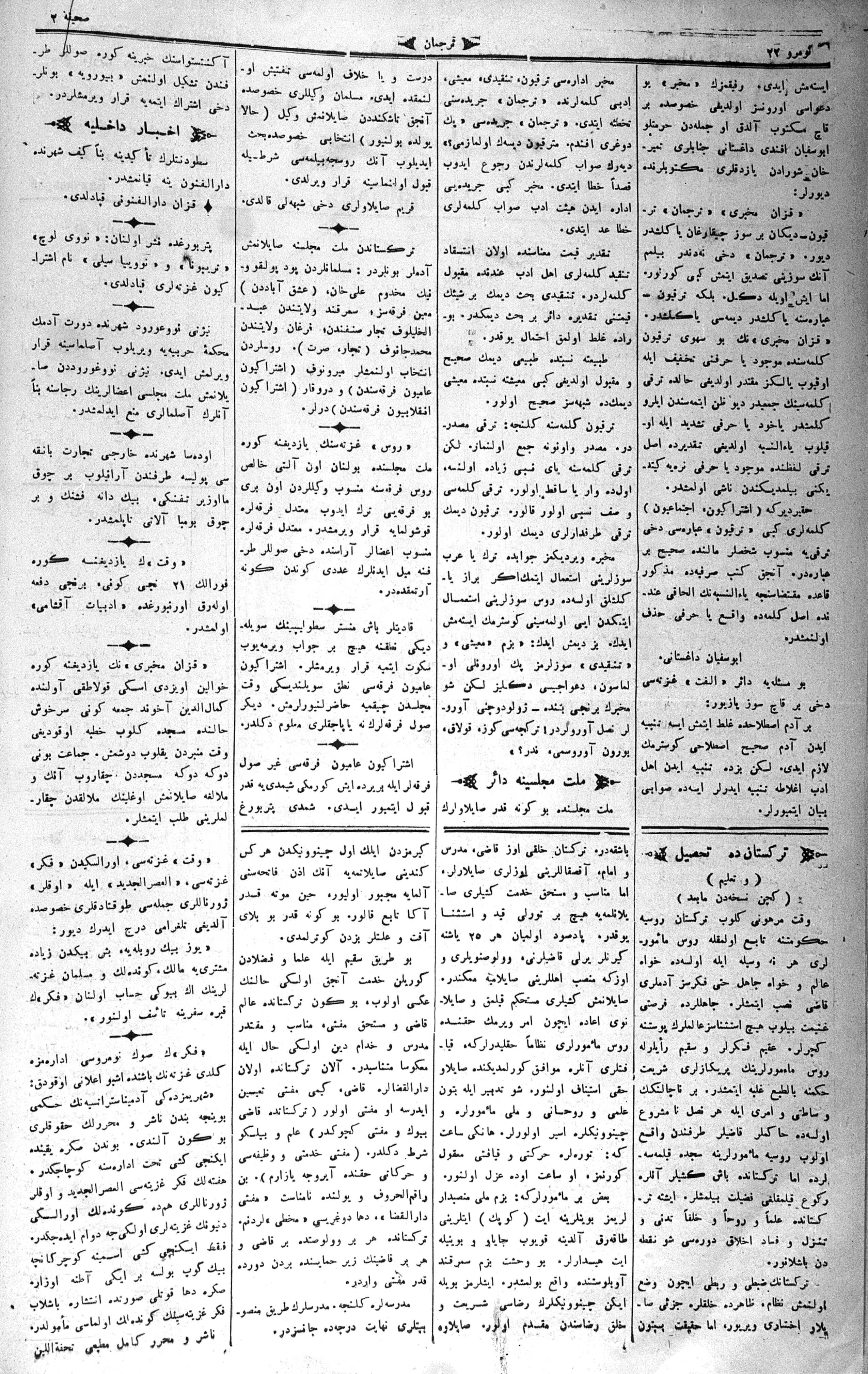 Turkish-Russian newspaper published in Crimea by İsmail Gaspıralı.