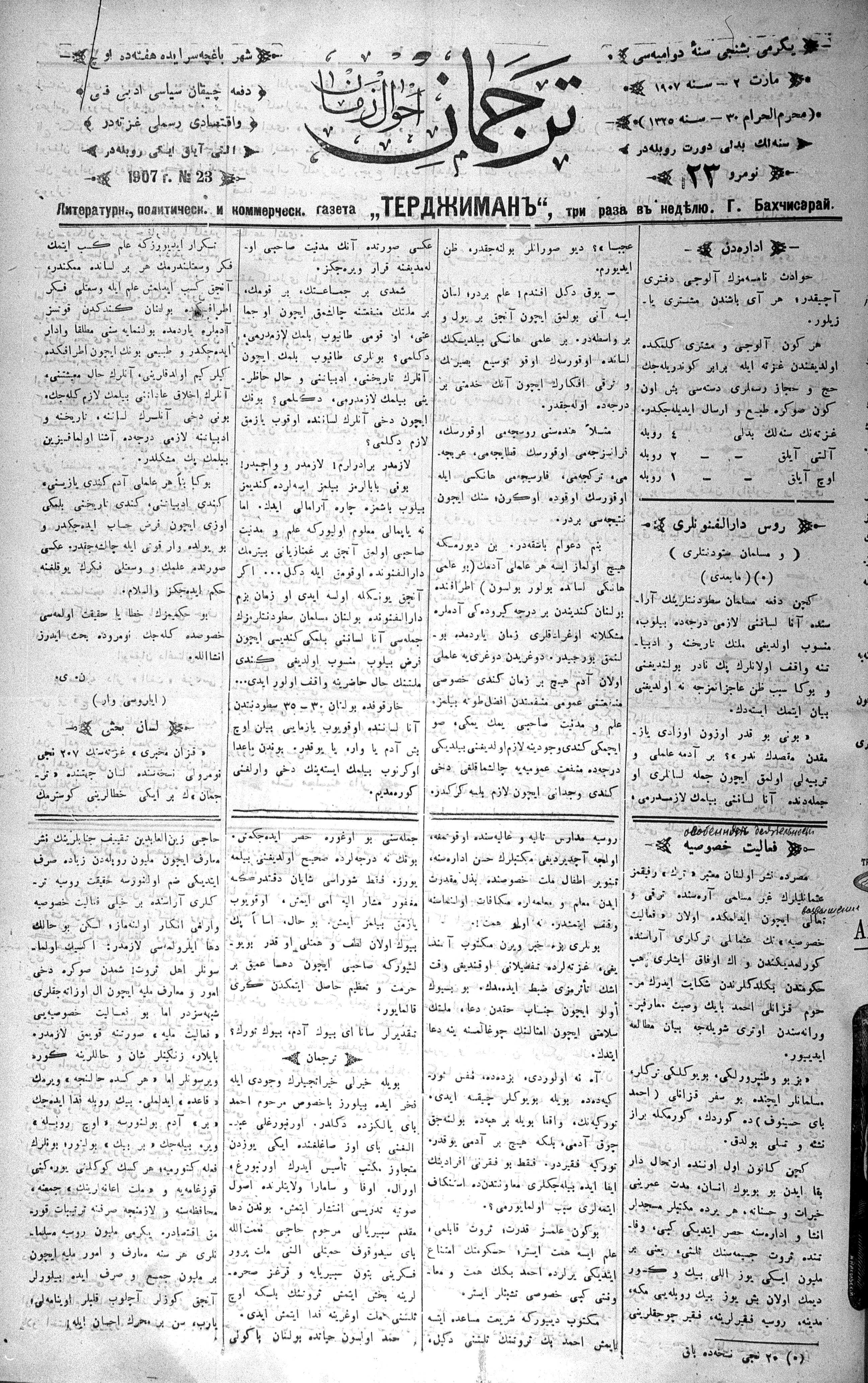 Tercüman, 02 March 1907 Year 25 No 23