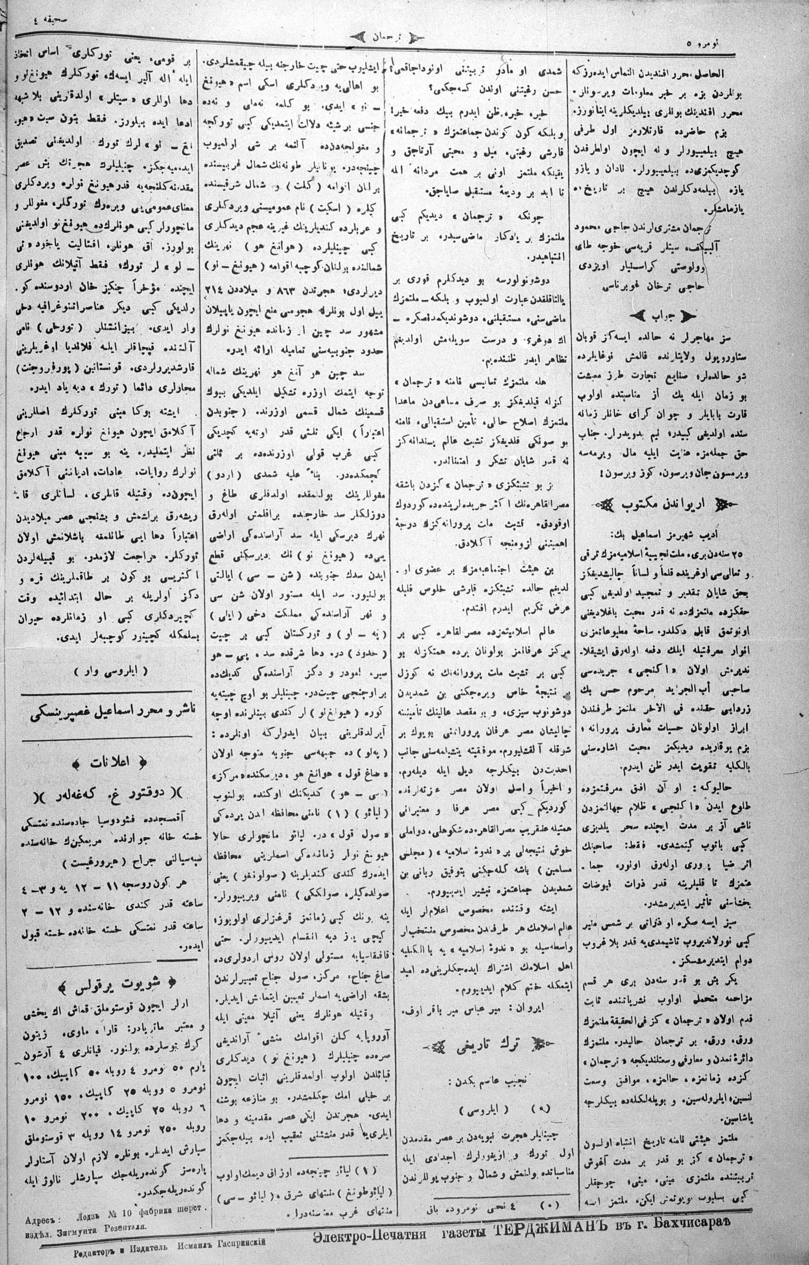 Turkish-Russian newspaper published in Crimea by İsmail Gaspıralı.