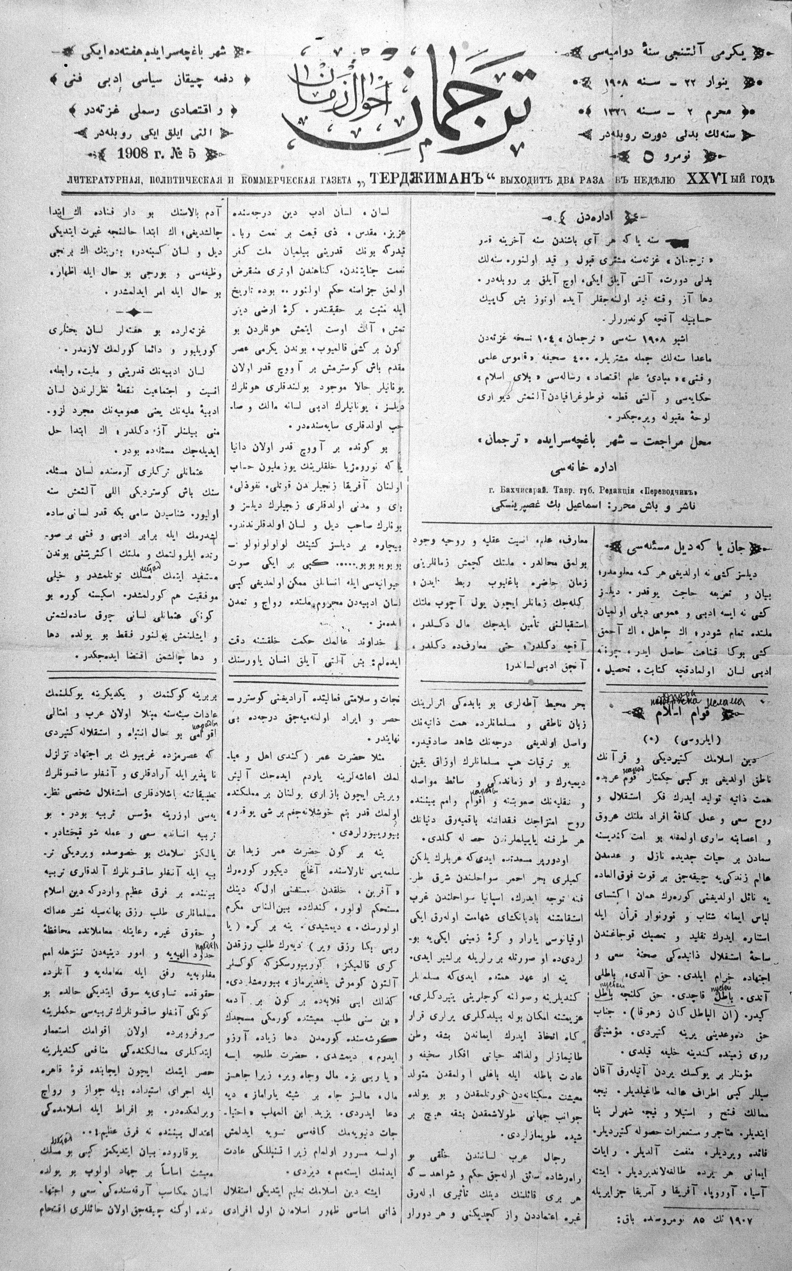 Tercüman, 22 January 1908 Year 26 No 5