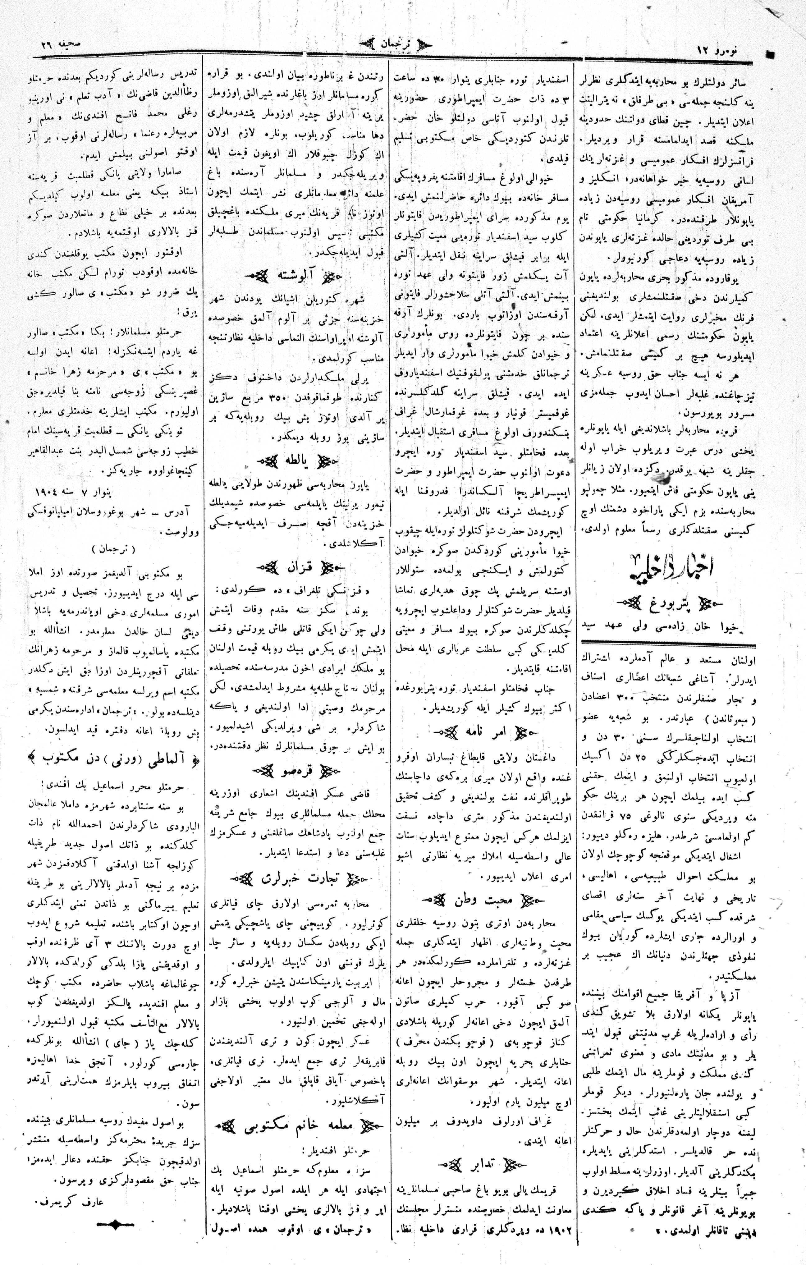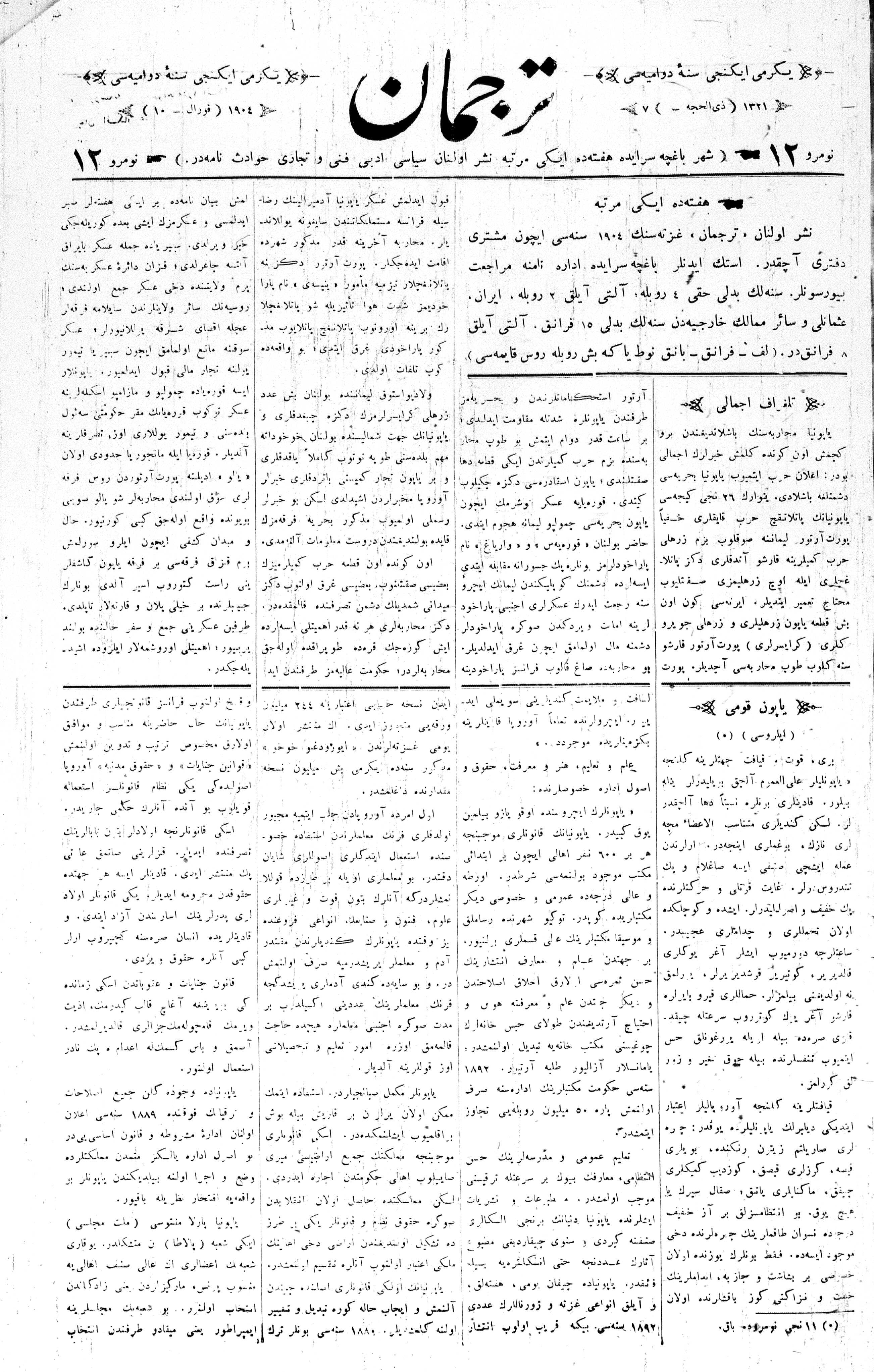 The name of the newspaper changed to Tercüman-ı Ahval-i Zaman in 1905. In 1909, it started to be published under its first name, Tercüman.