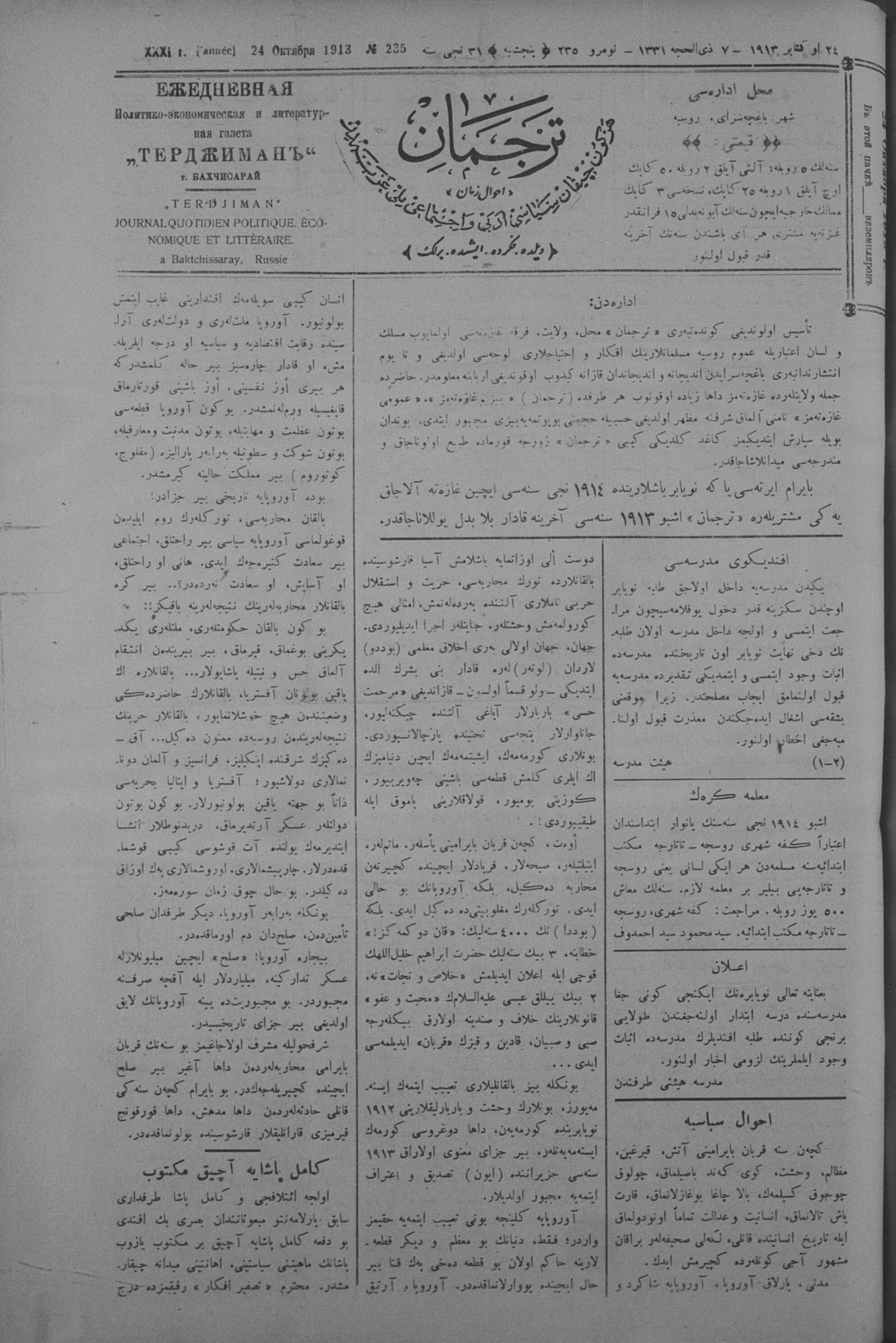 Tercüman, 24 October 1913 Year 31 No 235