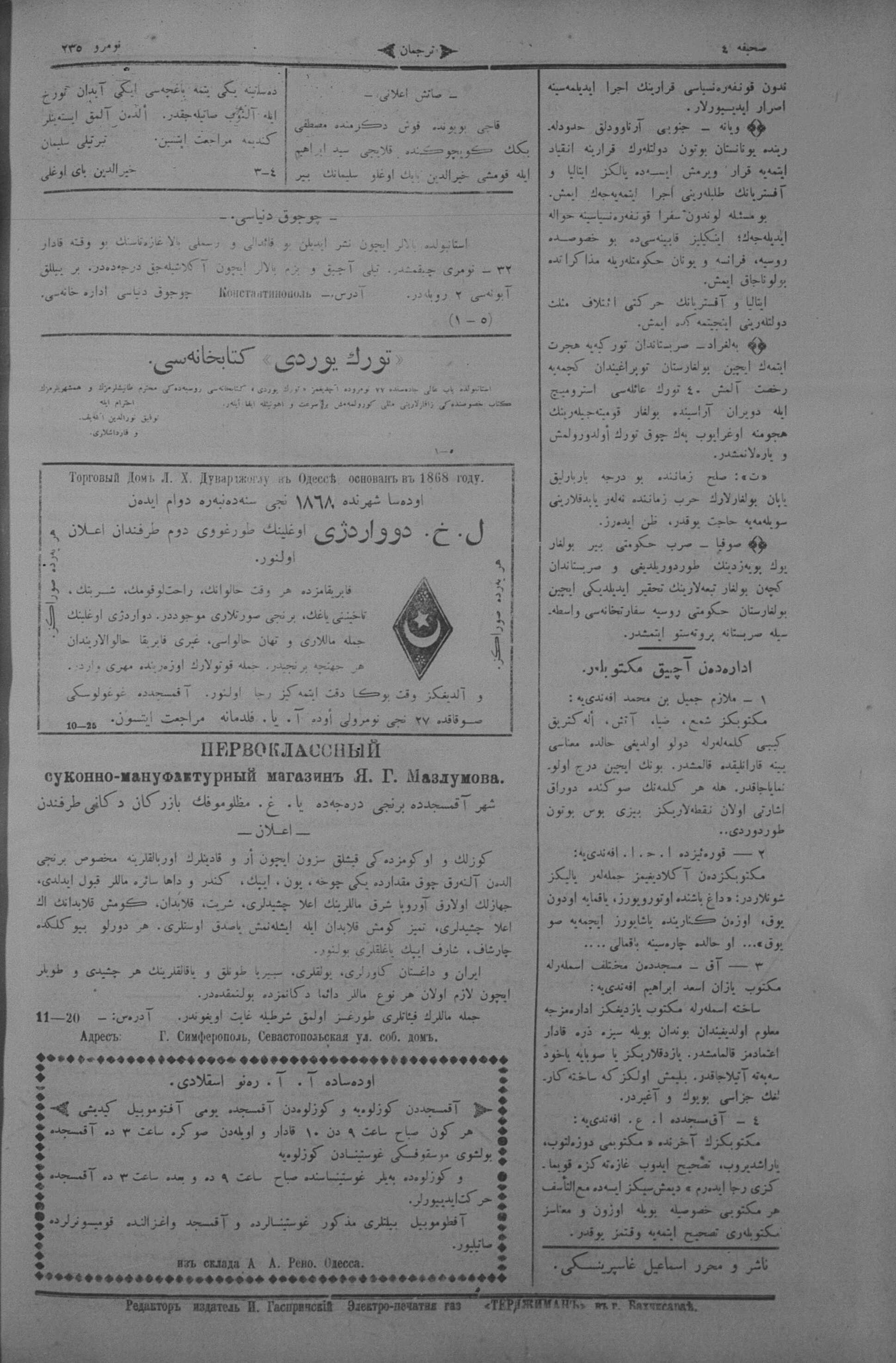 Turkish-Russian newspaper published in Crimea by İsmail Gaspıralı.