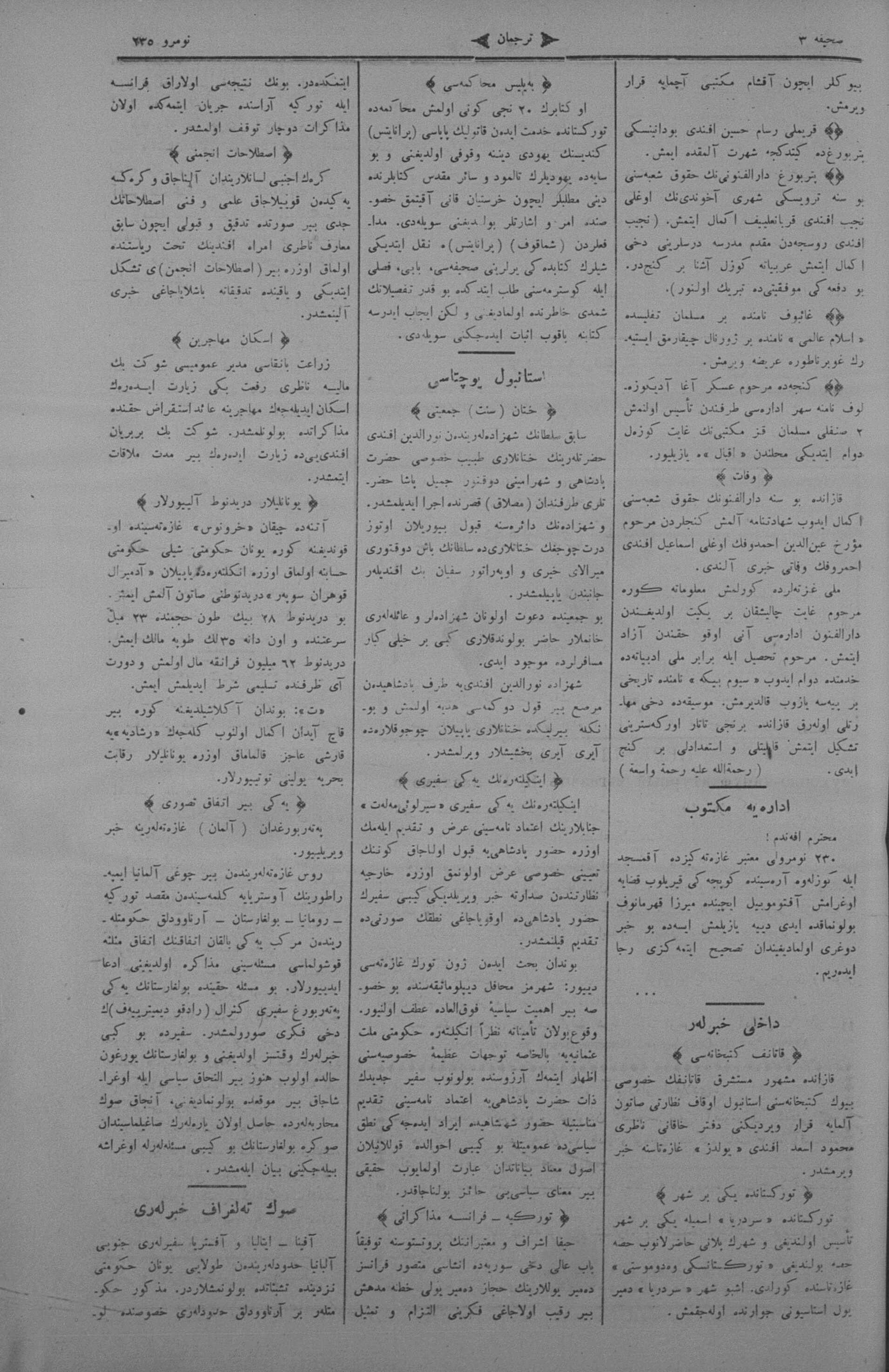 The name of the newspaper changed to Tercüman-ı Ahval-i Zaman in 1905. In 1909, it started to be published under its first name, Tercüman.