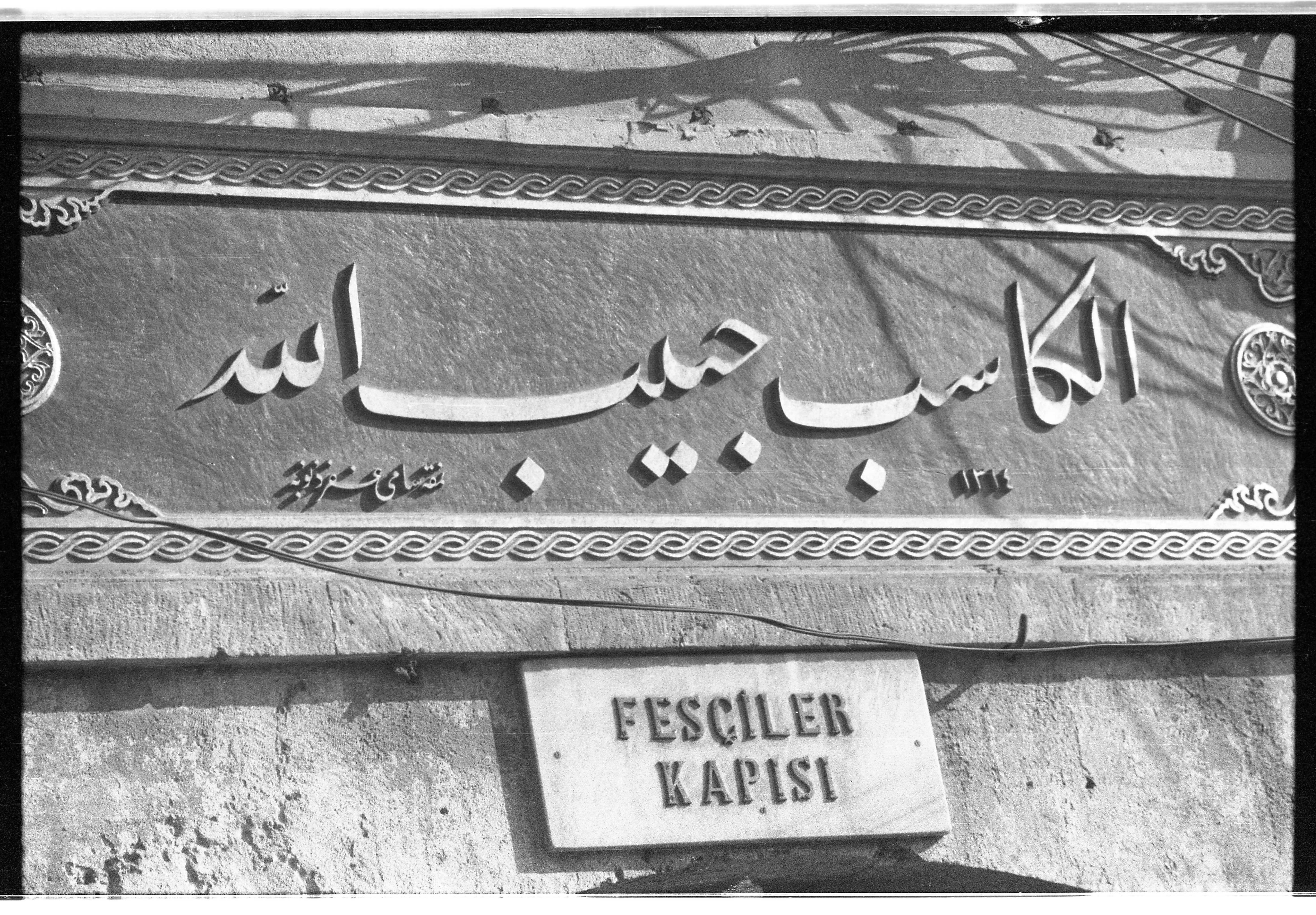 Kapalıçarşı Bayezid Fesçiler Kapısı'nın Hattat Sami Efendi tarafından yazılmış kitabesi ve tuğrası