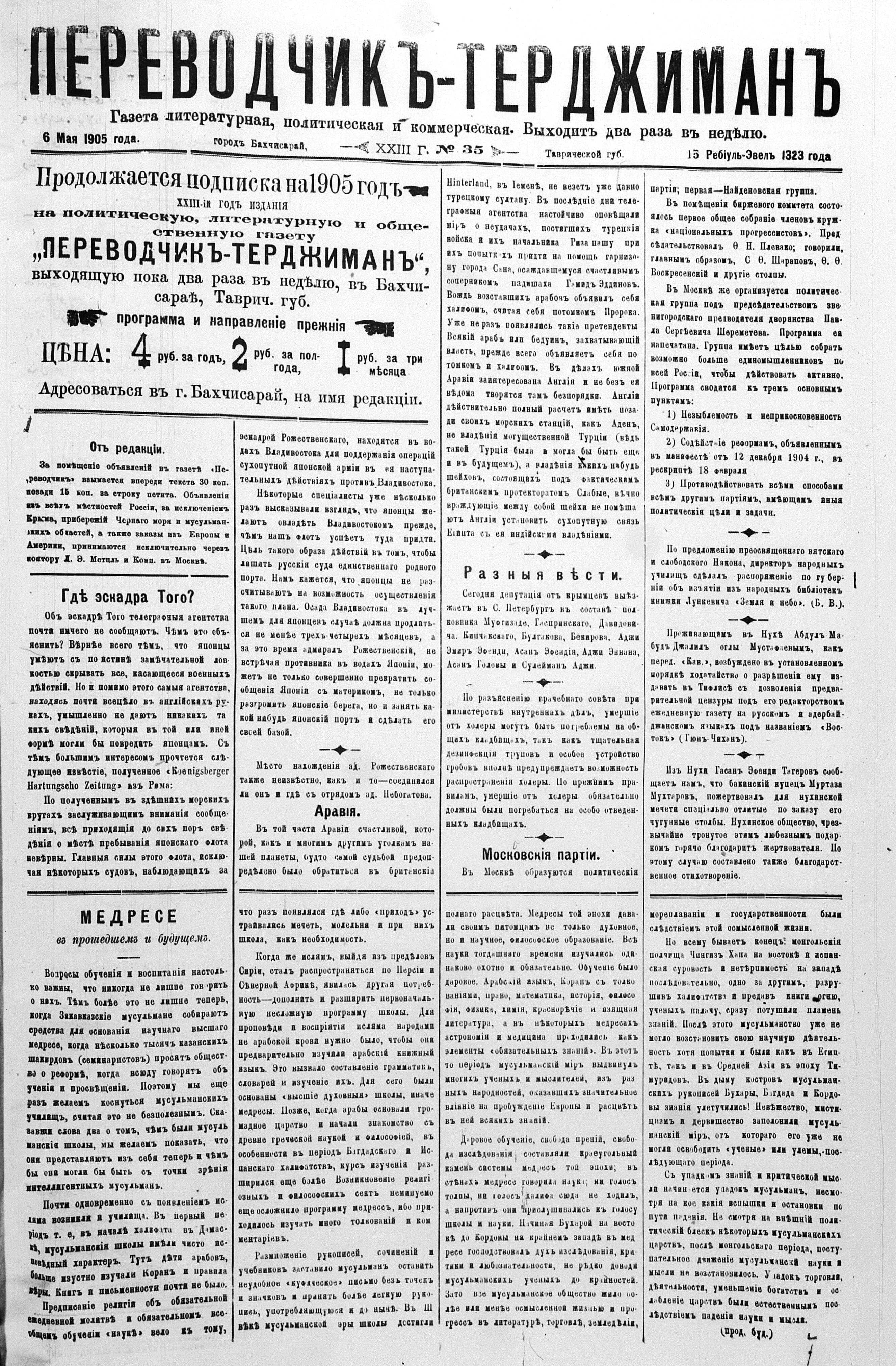 Turkish-Russian newspaper published in Crimea by İsmail Gaspıralı.