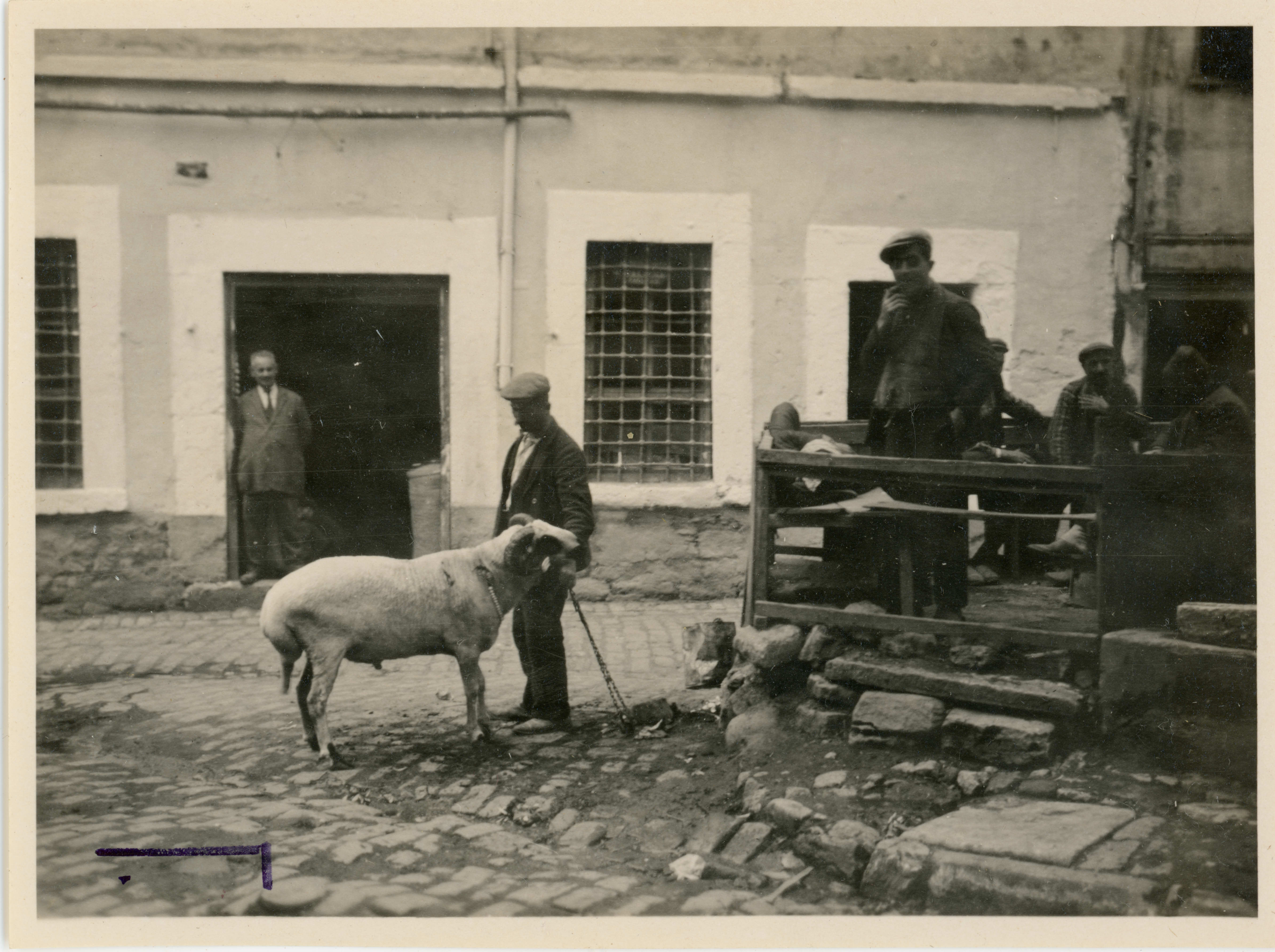 İstanbul'da koyun satıcısı ve bankta oturanlar