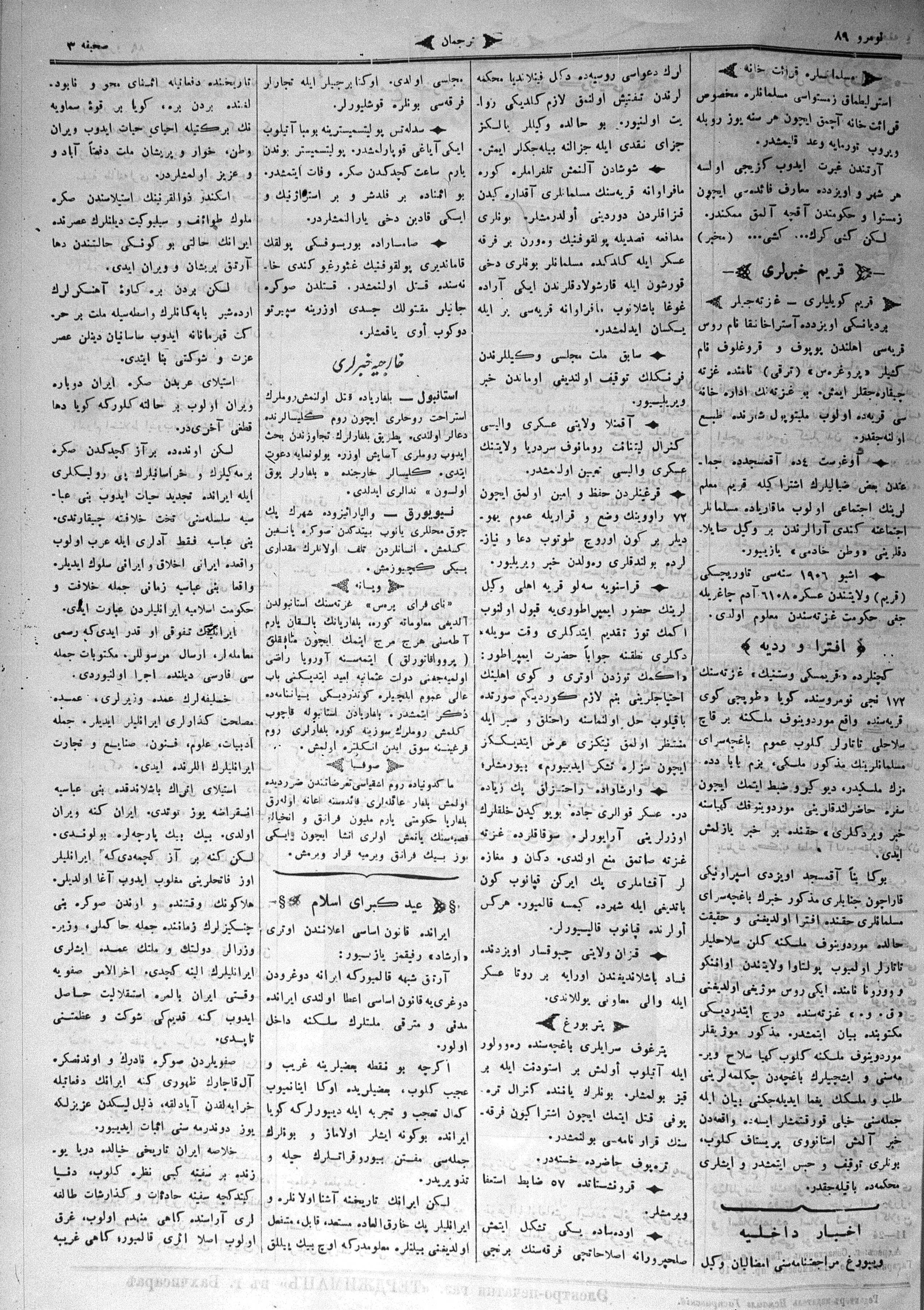 The name of the newspaper changed to Tercüman-ı Ahval-i Zaman in 1905. In 1909, it started to be published under its first name, Tercüman.