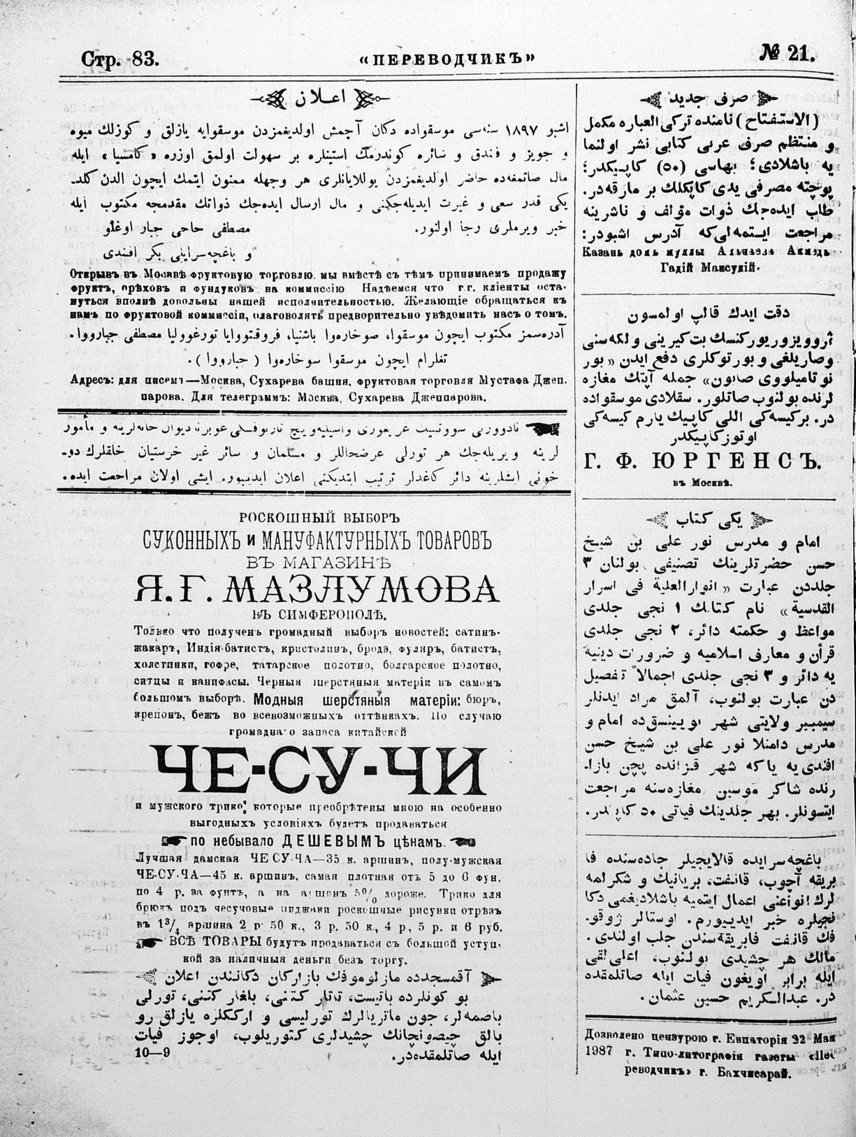 Turkish-Russian newspaper published in Crimea by İsmail Gaspıralı.