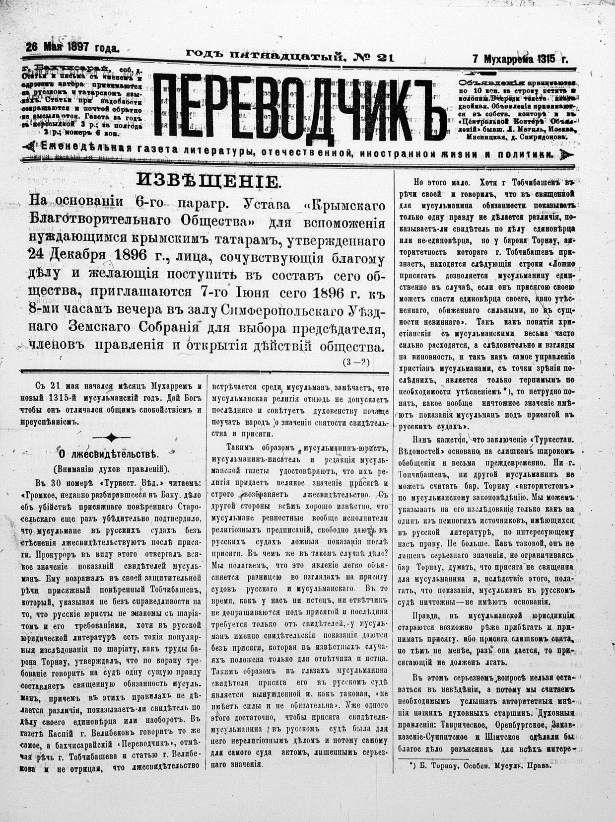 Tercüman, 26 May 1897 Year 15 No 21