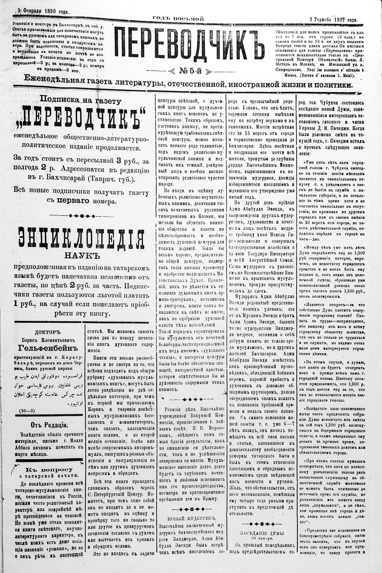 Tercüman, 09 February 1890 Year 8 No 5