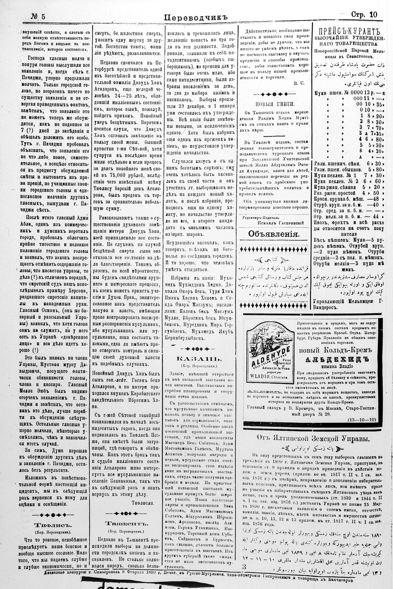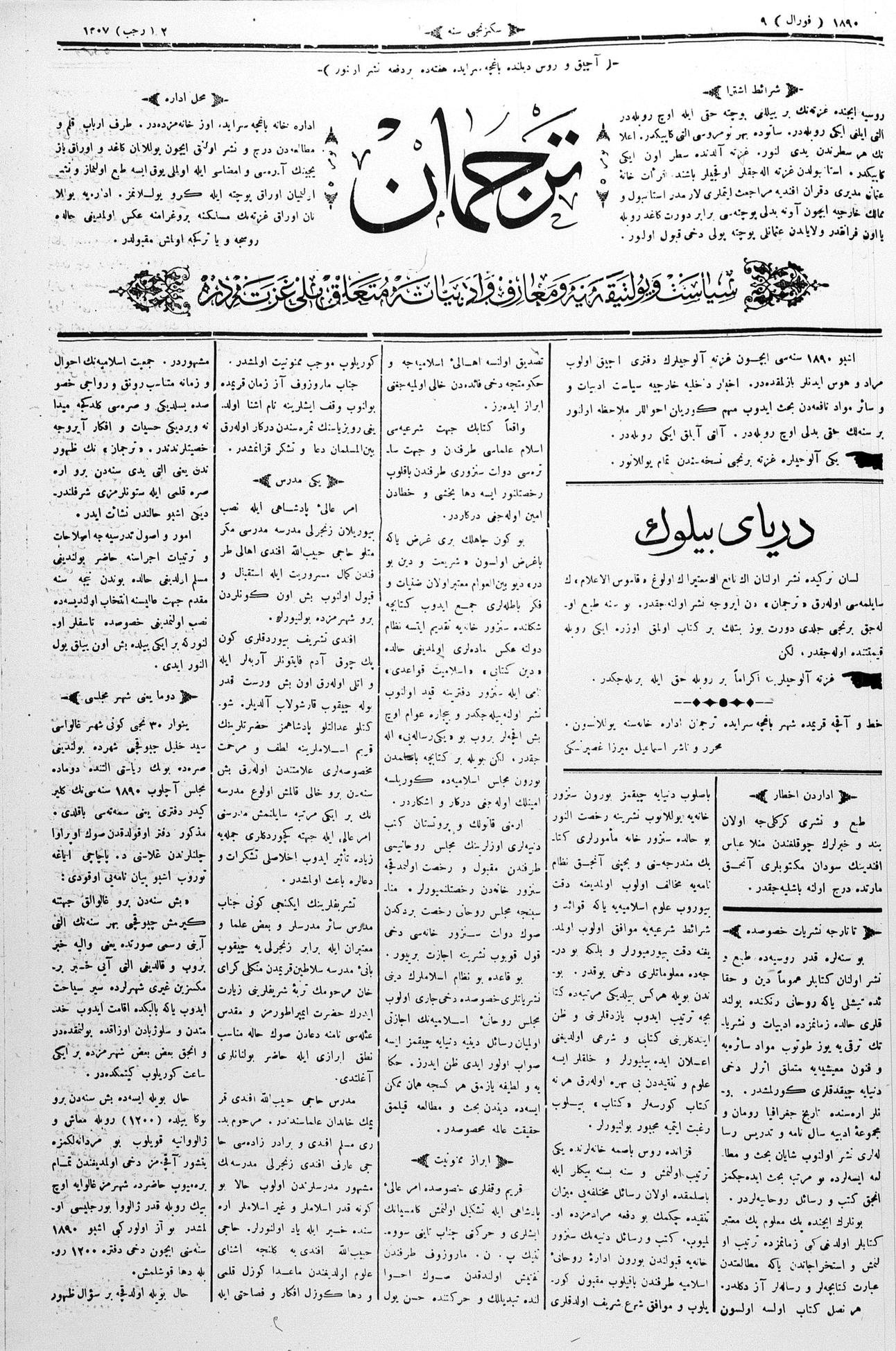Turkish-Russian newspaper published in Crimea by İsmail Gaspıralı.