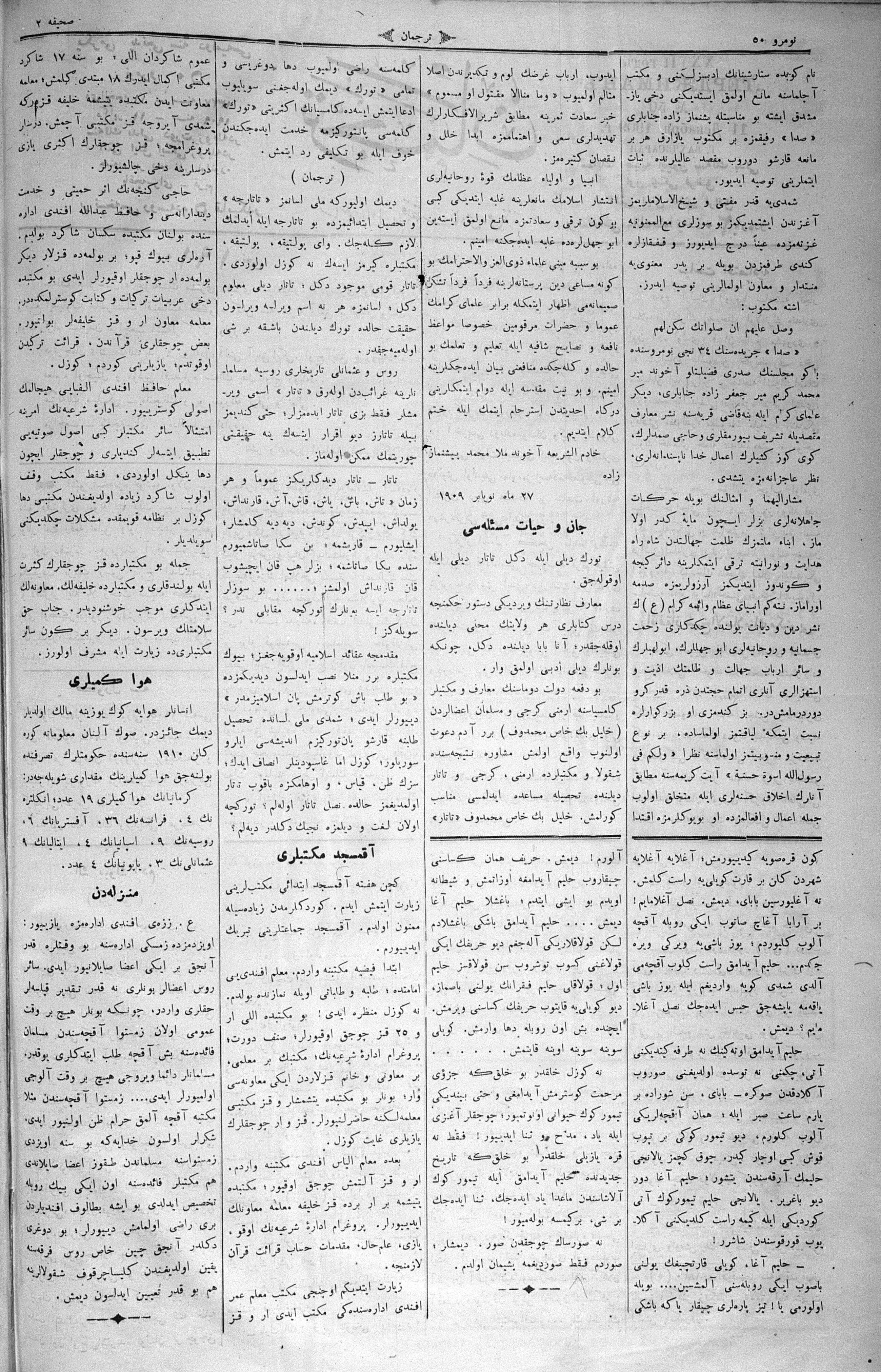 Tercüman, 11 December 1909 Year 27 No 50
