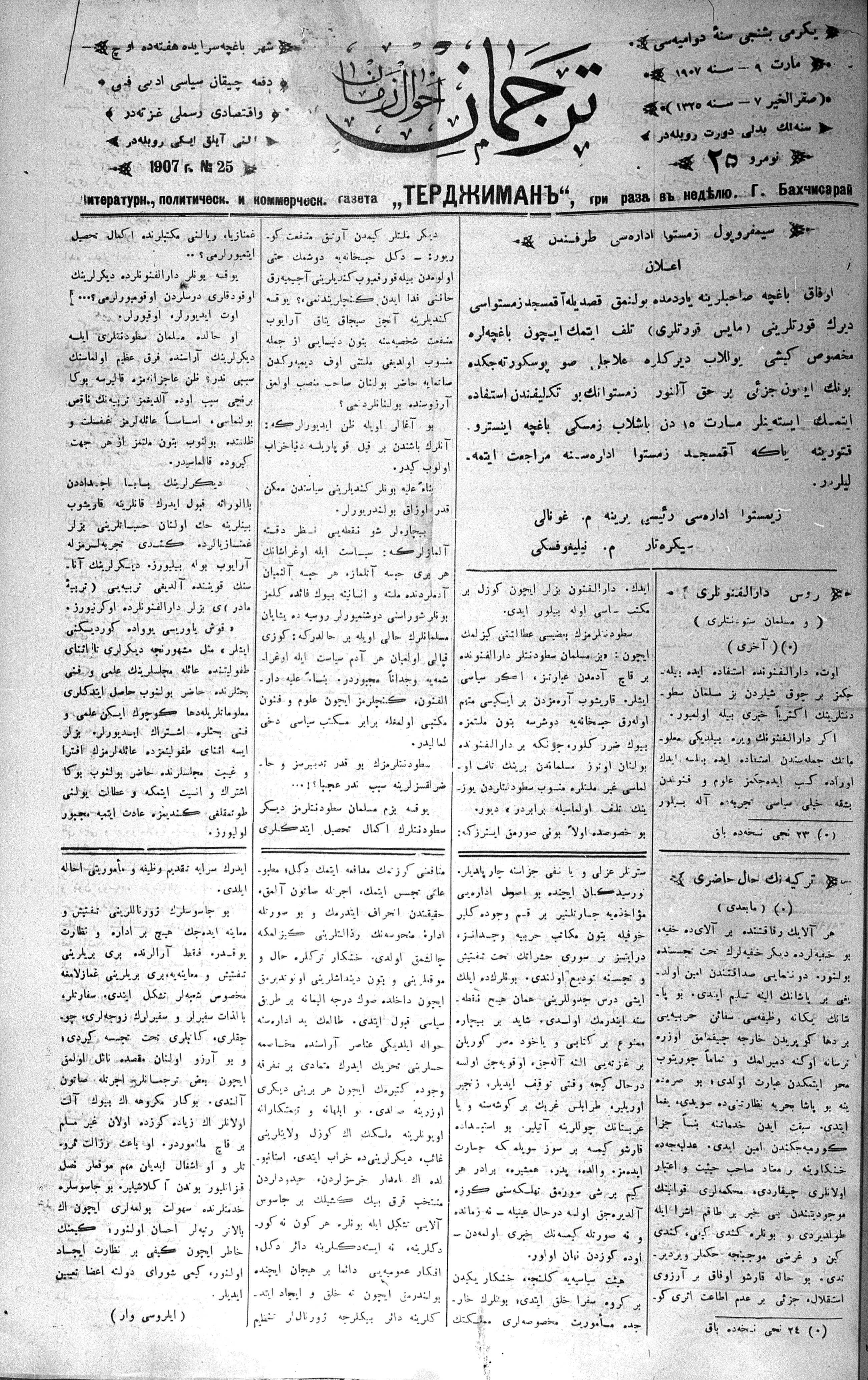 Tercüman, 09 March 1907 Year 25 No 25