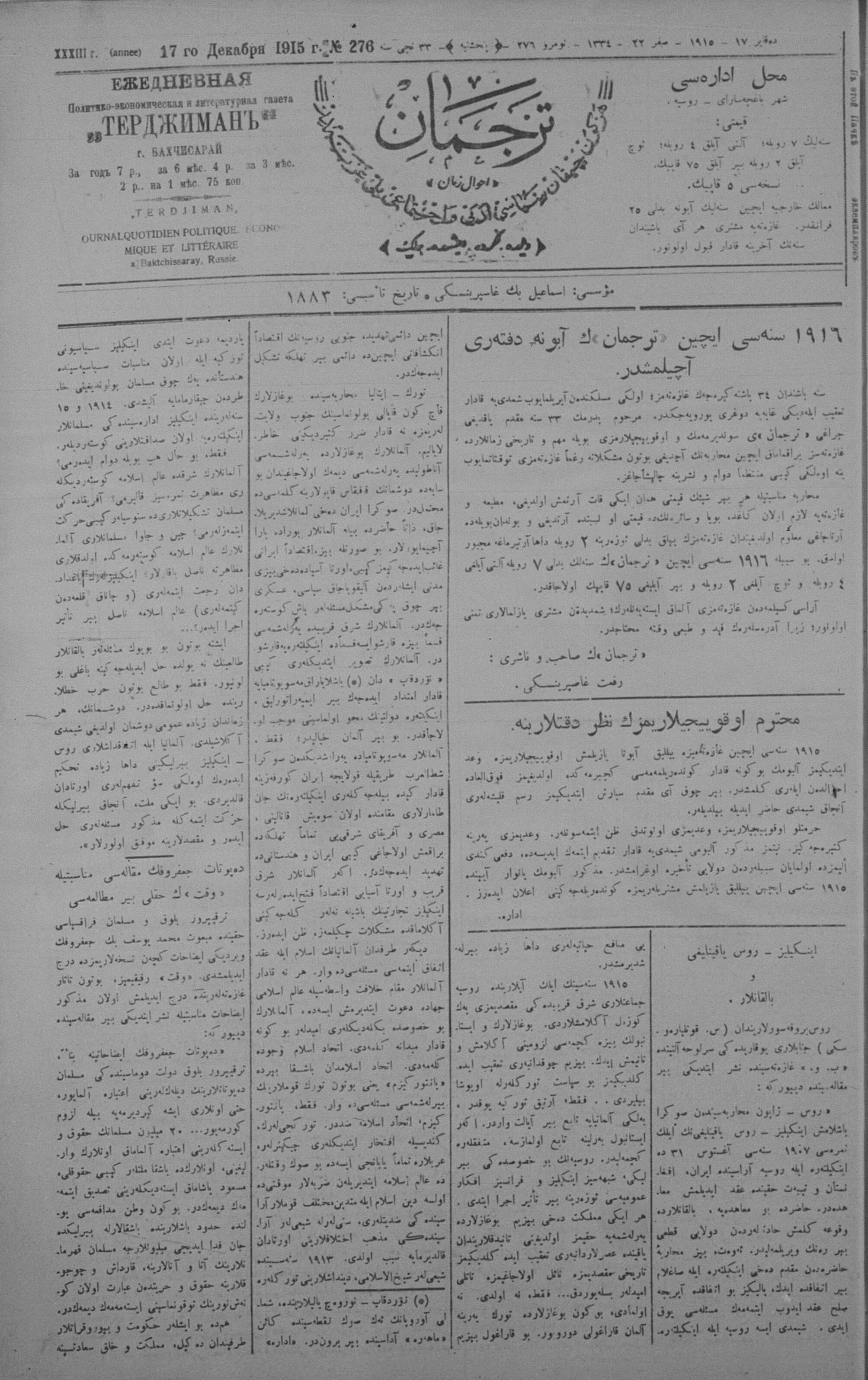 Turkish-Russian newspaper published in Crimea by İsmail Gaspıralı.