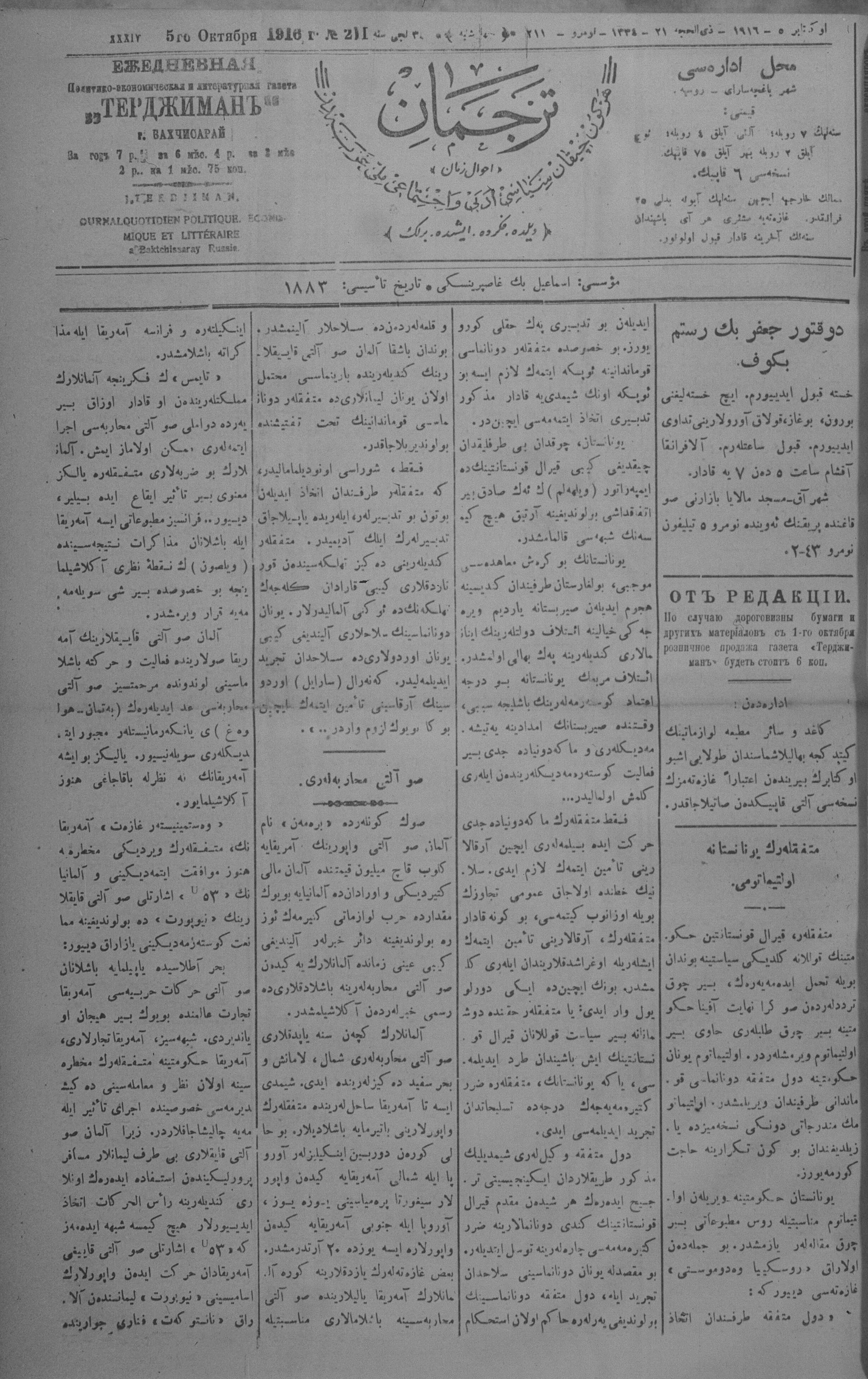 Turkish-Russian newspaper published in Crimea by İsmail Gaspıralı.