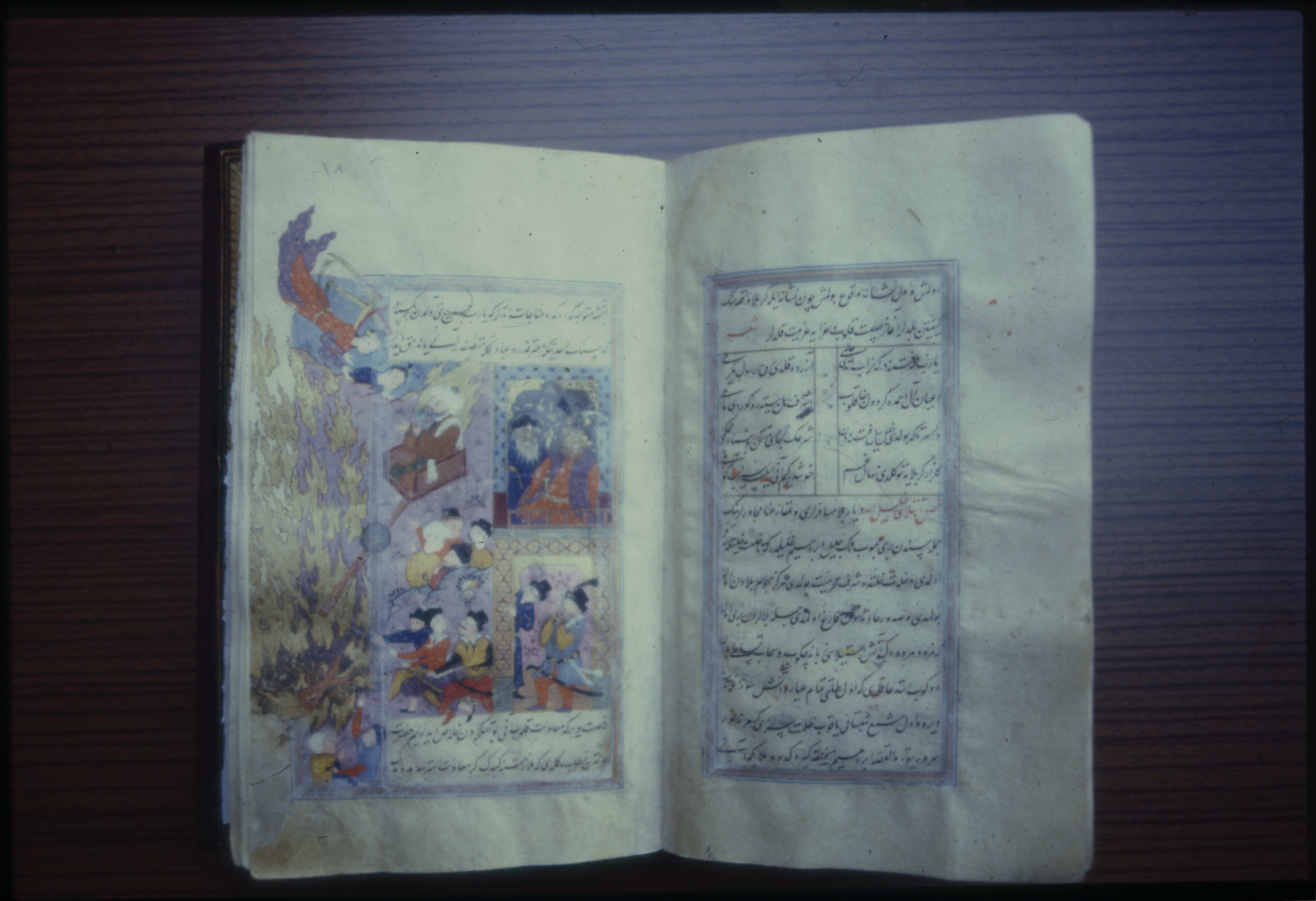 Fuzuli'nin Hadikatu's-sueda adlı kitabından Hz. İbrahim'in mancınıkla atılmasını gösteren minyatür (Süleymaniye Kütüphanesi Fatih 4321, v. 18a)